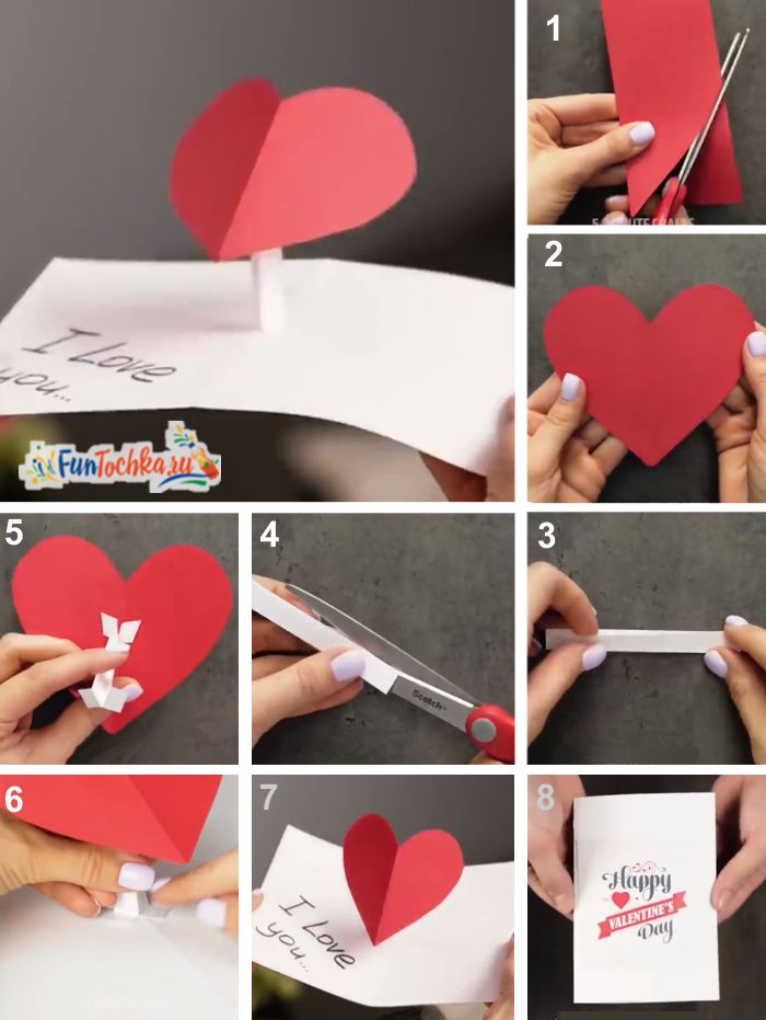 Объемная открытка с сердечком своими руками к Дню Влюбленных — 2 варианта с фото