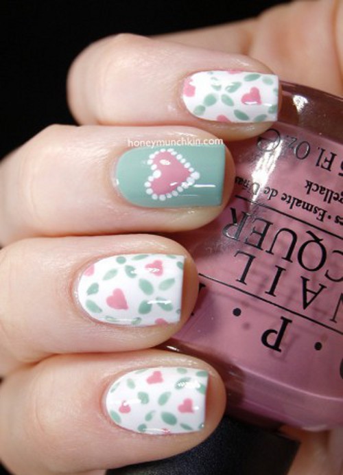 Первым, что приходит на ум при размышлении о данном празднике, это, конечно же, сердечки. Да, идея весьма тривиальна, однако если совместить вышеупомянутые узоры с мелким горошком, прямыми линиями либо нестандартным фоновым оформлением она тут перестает быть обыденной, какой была поначалу.