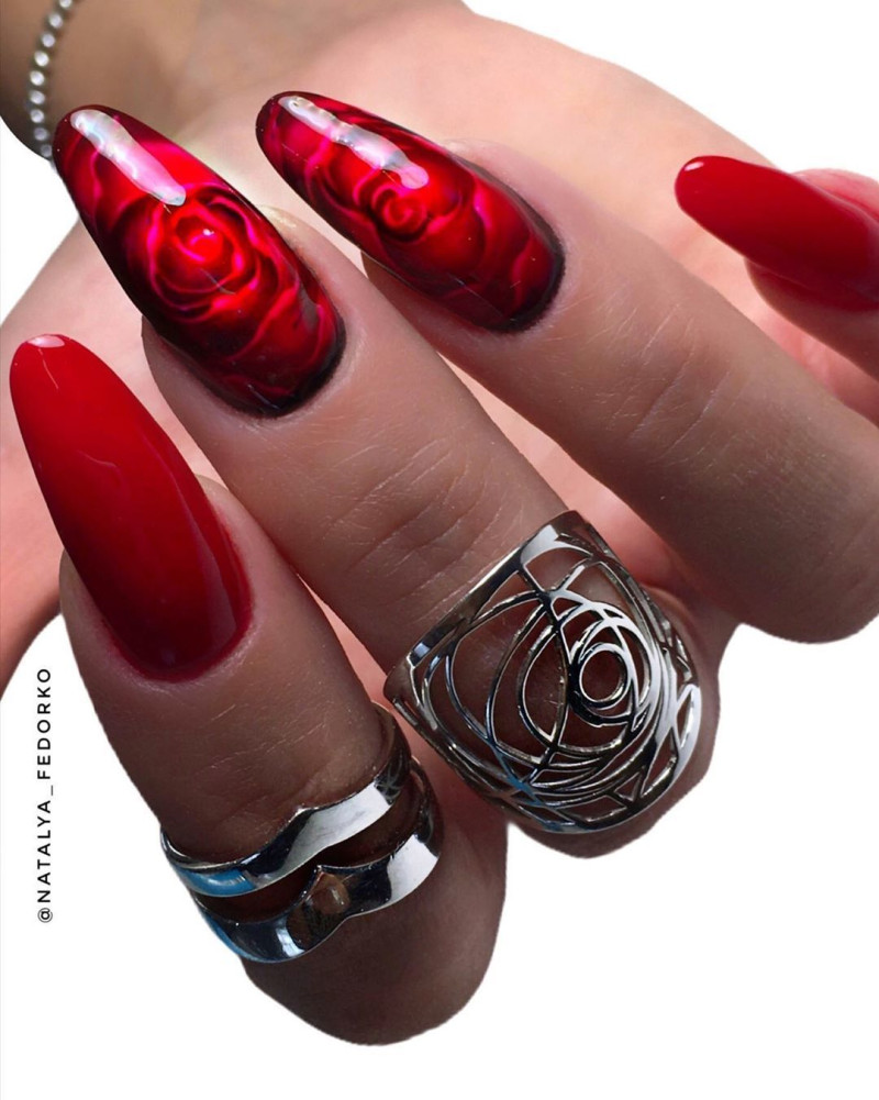 Если вы подумали, что раз спойлер в виде конкретных цветов в заголовке уже проскочил, вы теперь знаете, какие идеи маникюра на святого Валентина вы увидите. Не совсем. Скукой здесь и не пахнет. Следующие варианты маникюра придутся по вкусу девушкам и женщинам, у которых жажда экспериментов в крови.