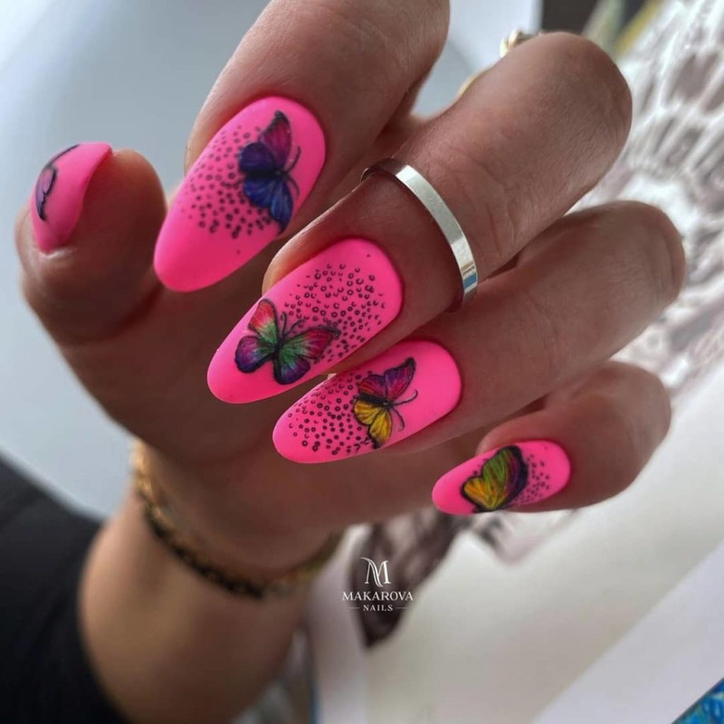 В таком варианте маникюра для закрепления рисунка уместно использовать матовый топ.