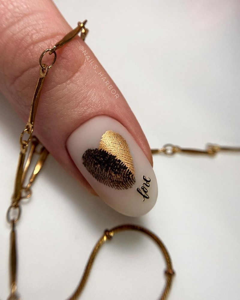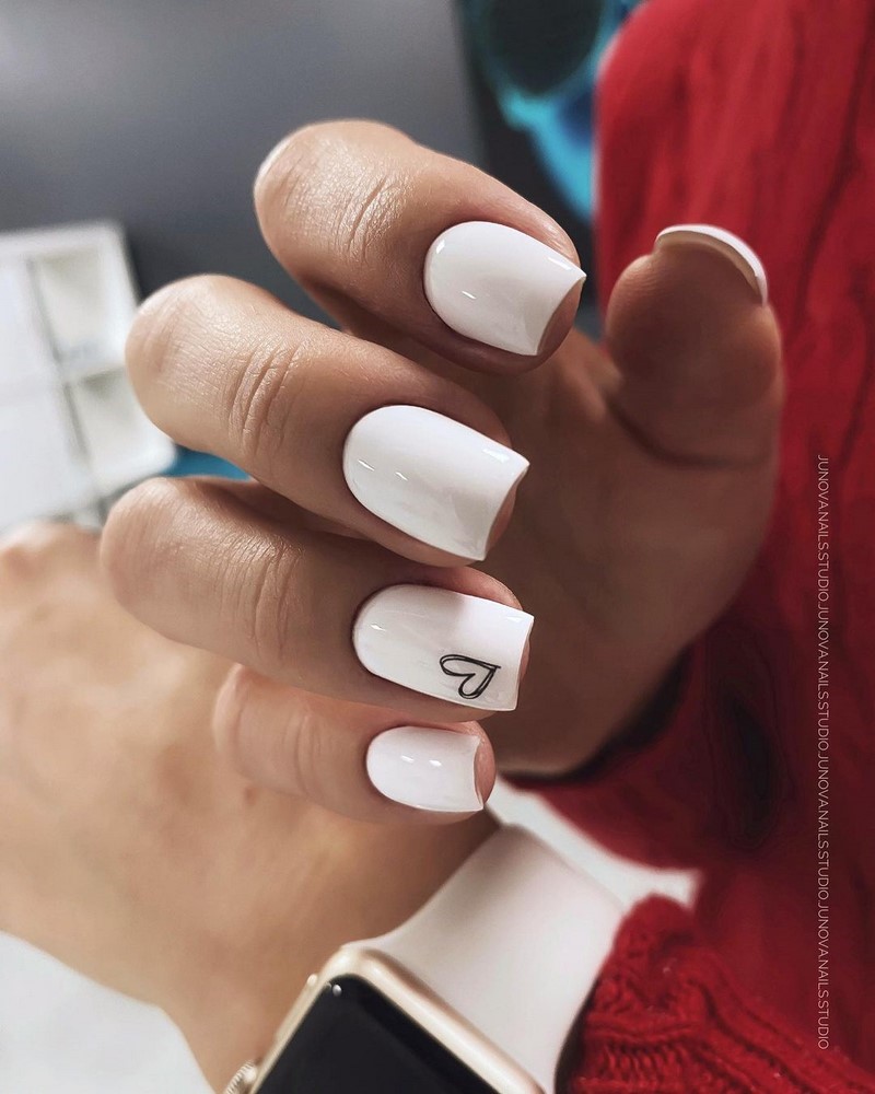Для тех, кто не хочет покрывать все ногти россыпью сердец, будет достаточно одного, но контрастного.