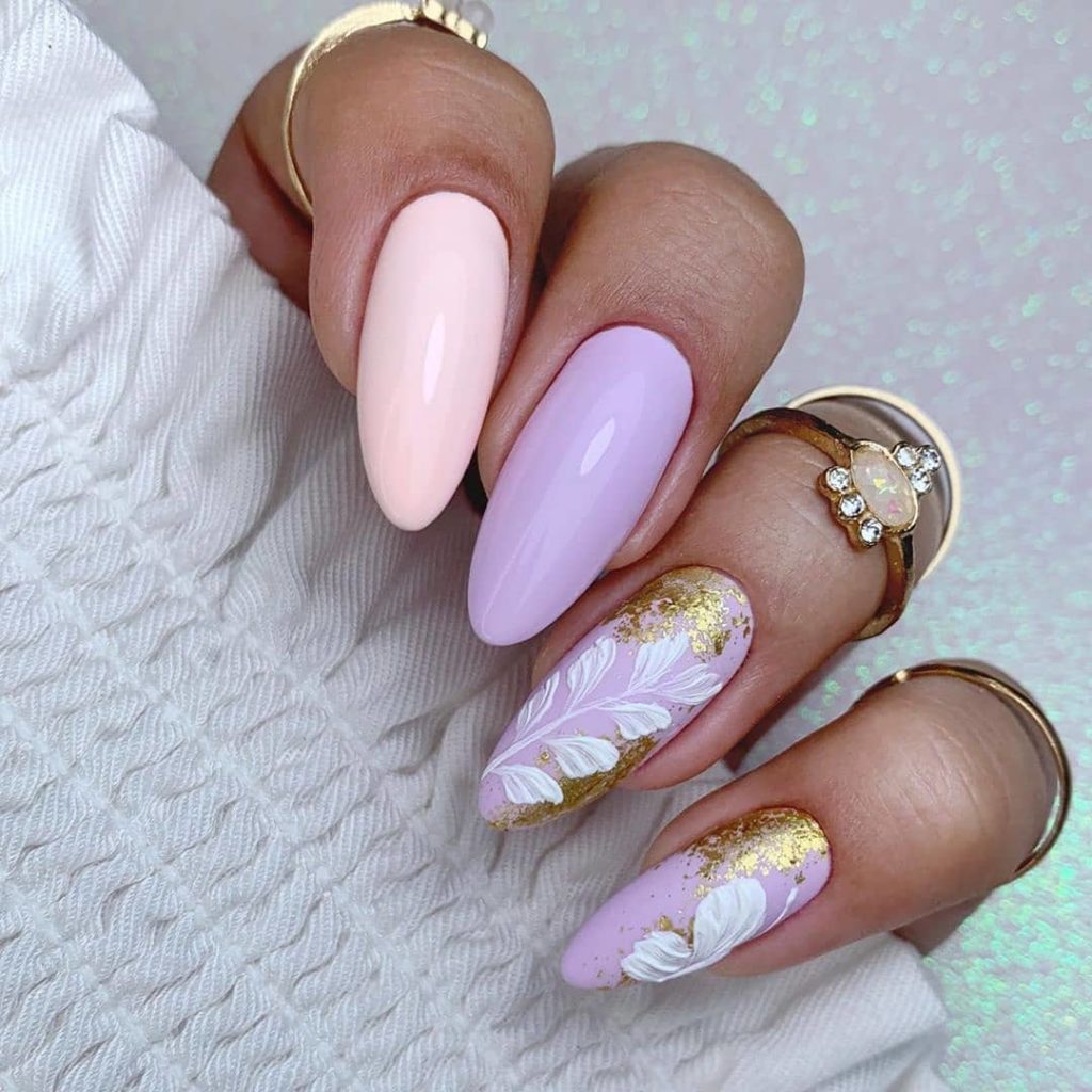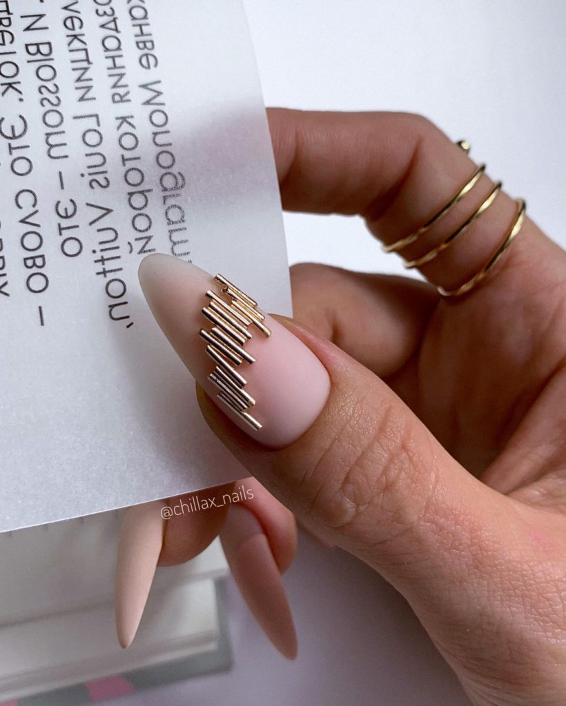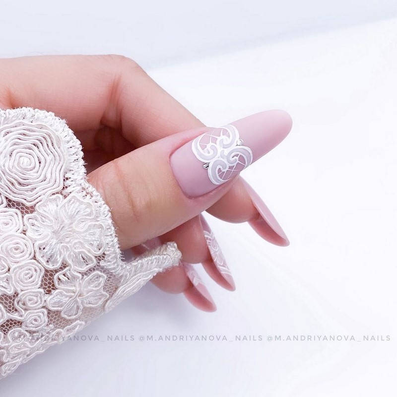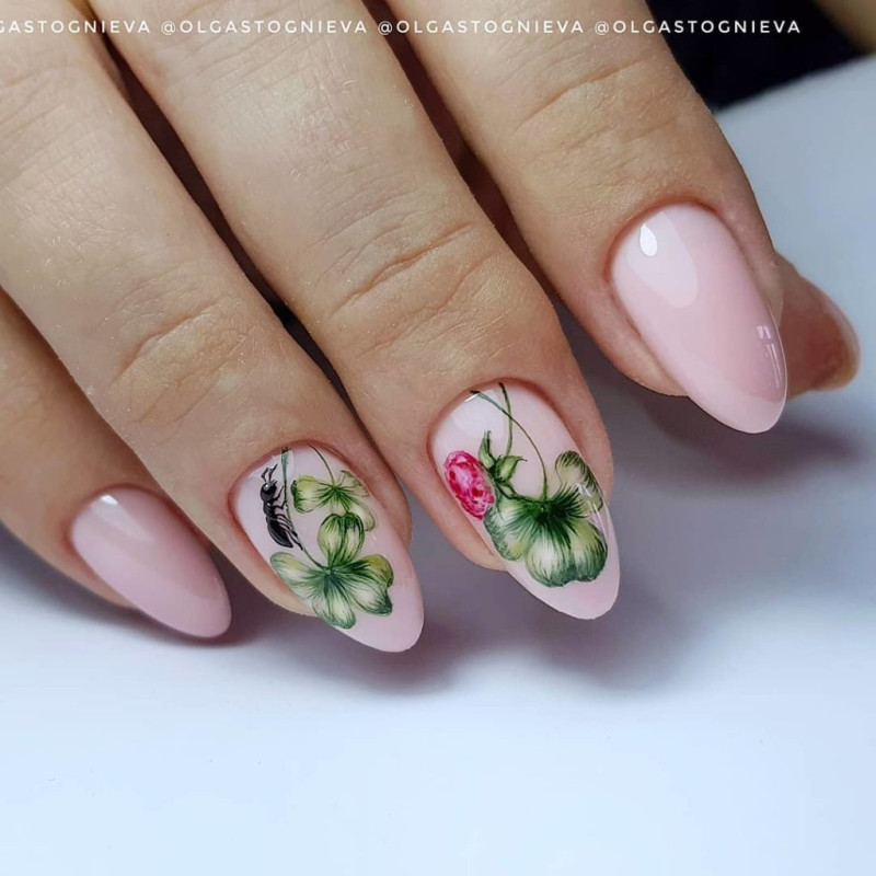 Для рисунков можно взять нежно-розовый цвет — тогда такой нейл-арт отлично впишется и в повседневность, особо не привлекая к себе всеобщее внимание