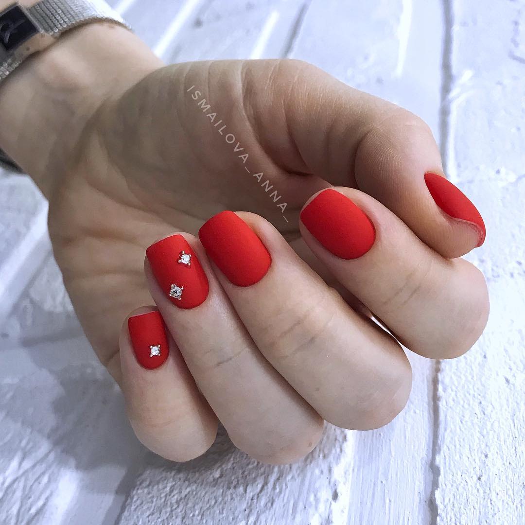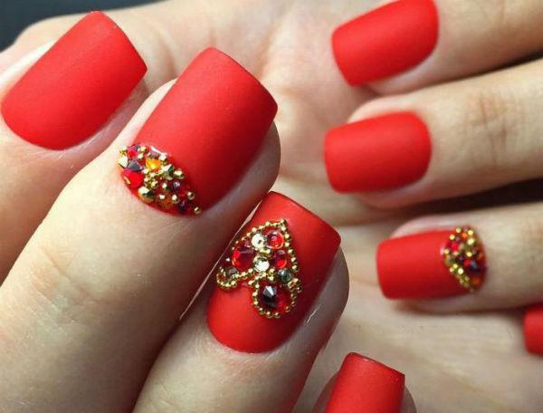 Маникюр с сердечками и стразами особенно шикарен с использованием матовой фактуры. Такая игра контрастов точно не оставит ваши ноготки без внимания и комплиментов.