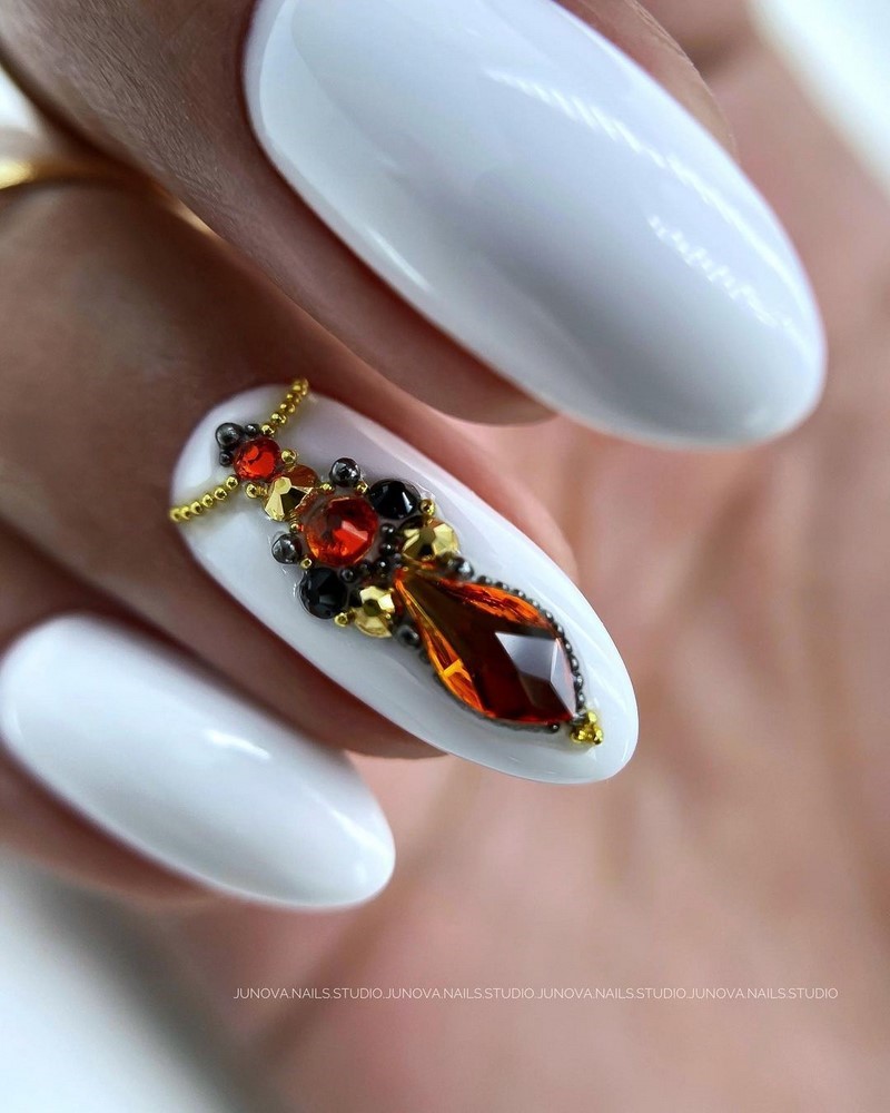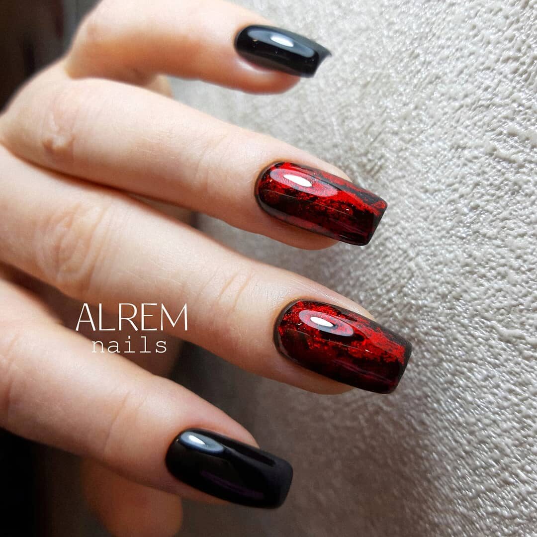 Также их можно нарисовать лаком с эффектом кракелюра, использовав при этом разноцветные фоновые оттенки. Ими вполне могут быть черный, белый, оранжевый или любой другой: