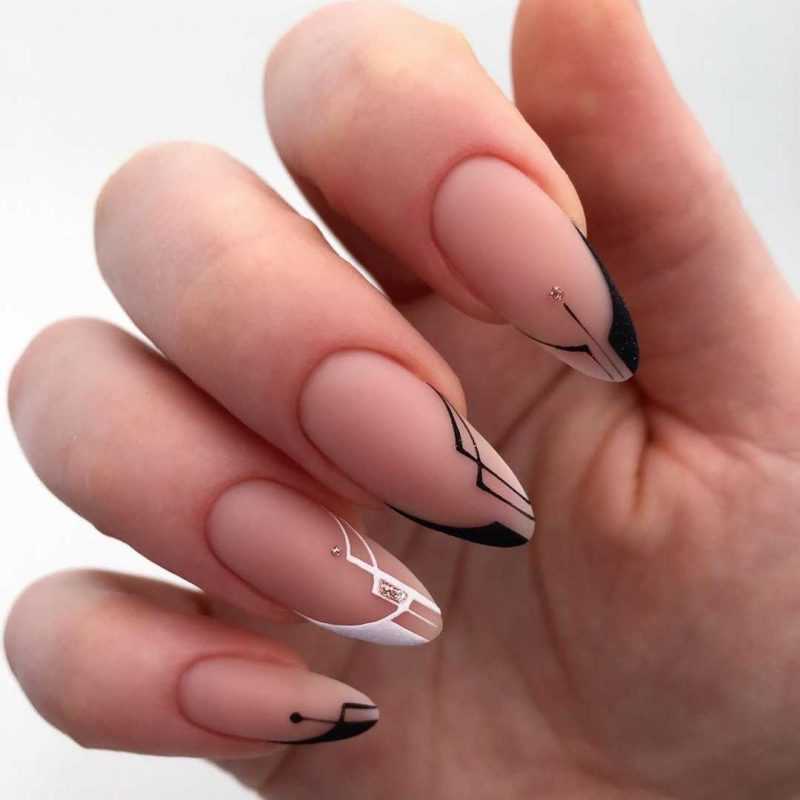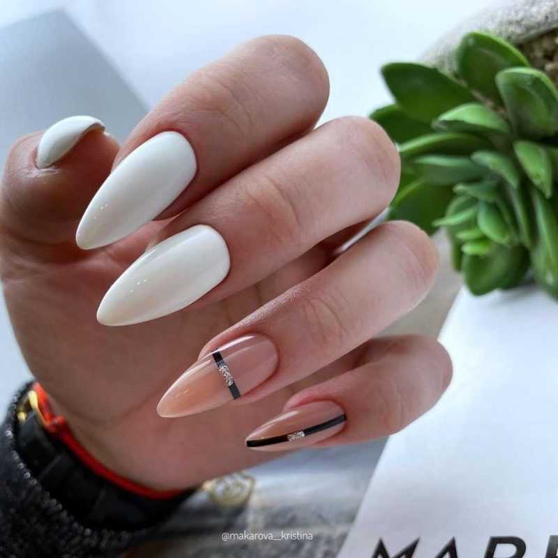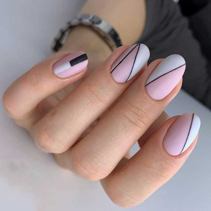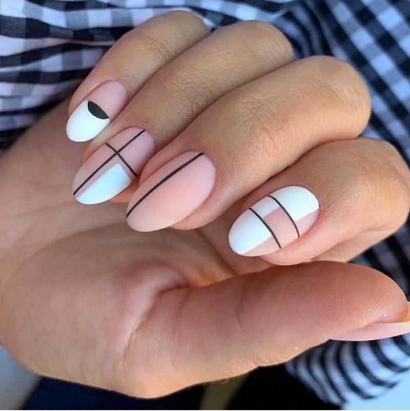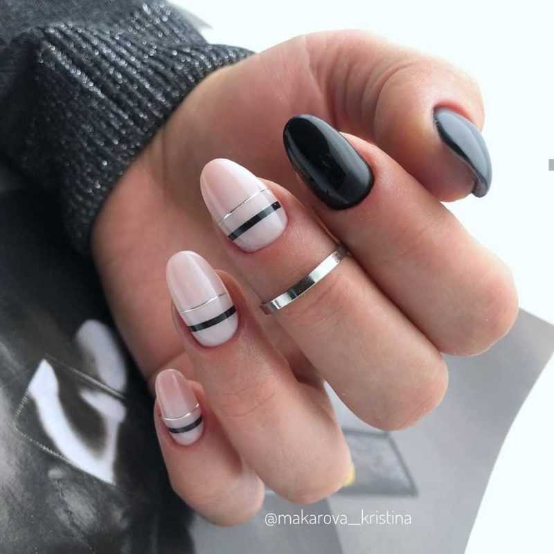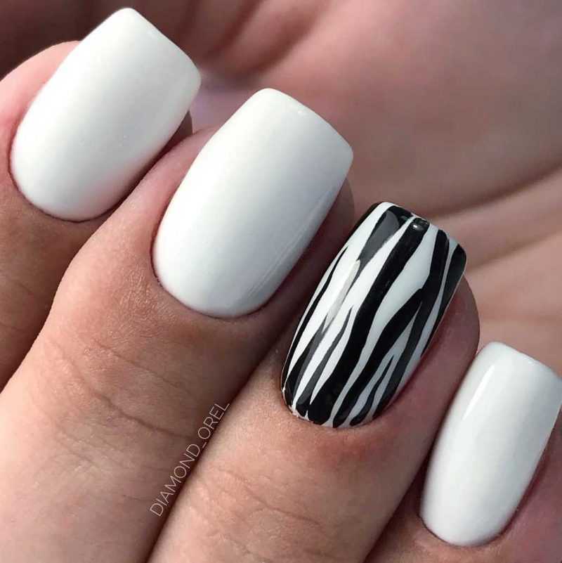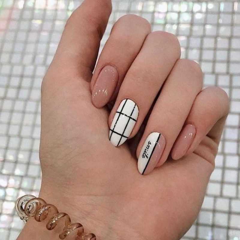 Современно будет выглядеть маникюр на 1 сентября в чёрно-белых тонах