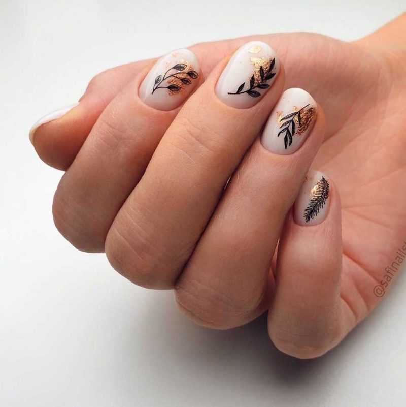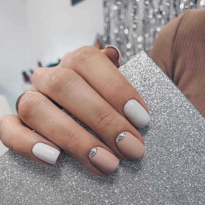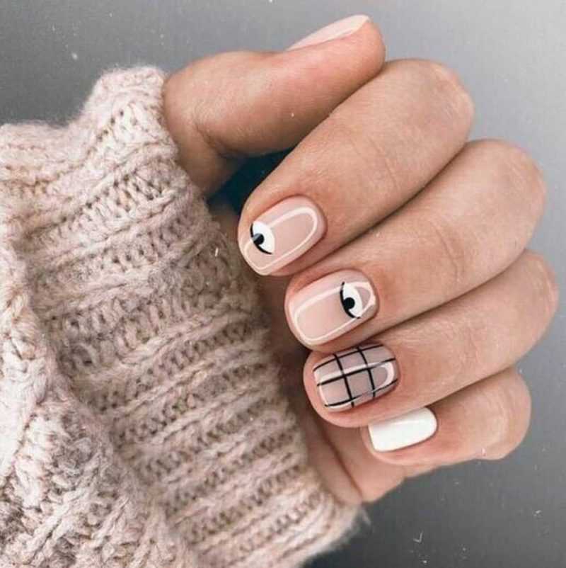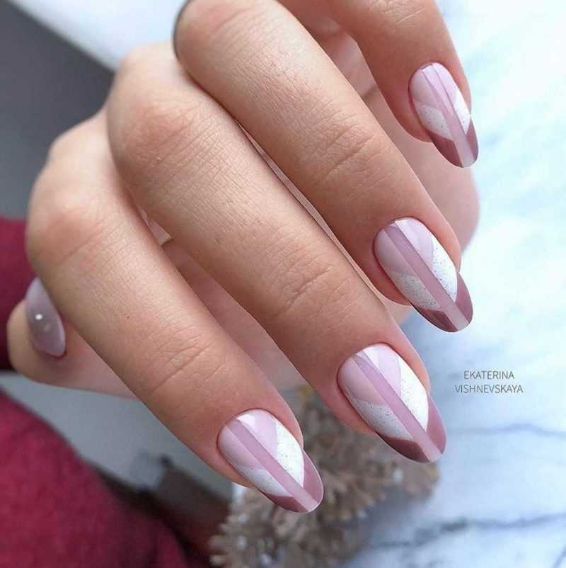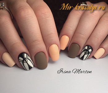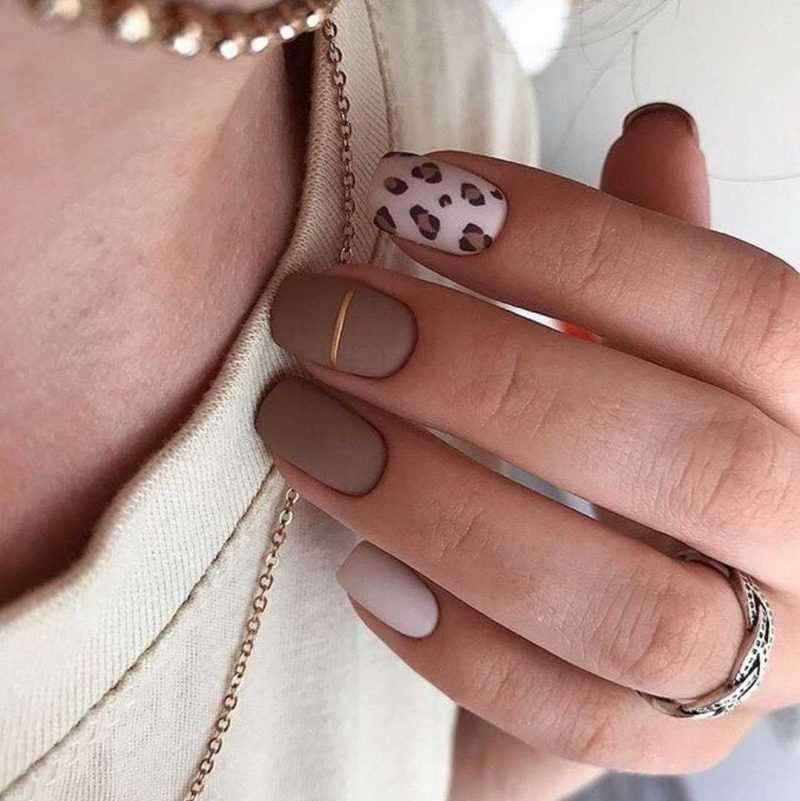 - нюдовый маникюр в оттенках бежевого и светло-коричневого;