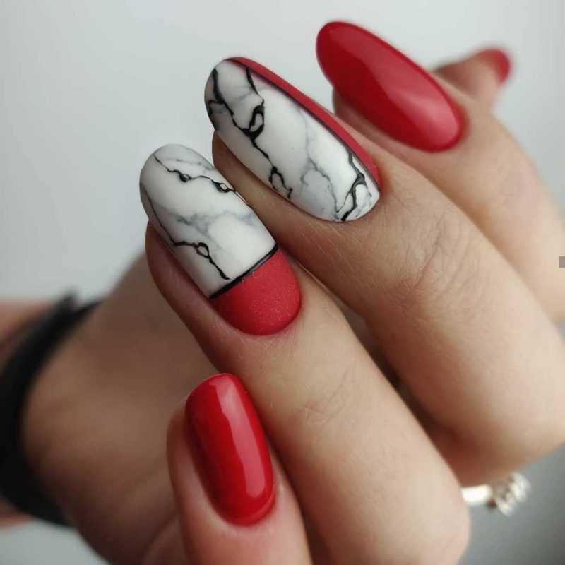 Удачное сочетание цвета и дизайна. Идея не новая, но по сей день популярная как среди любительниц маникюра, так и среди мастеров.