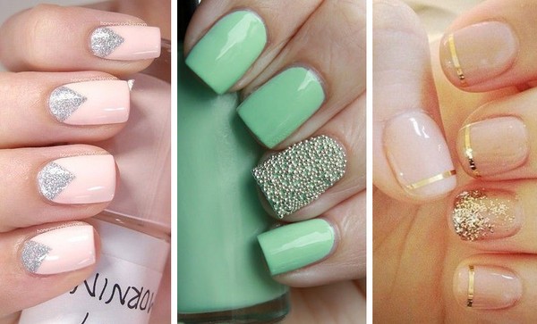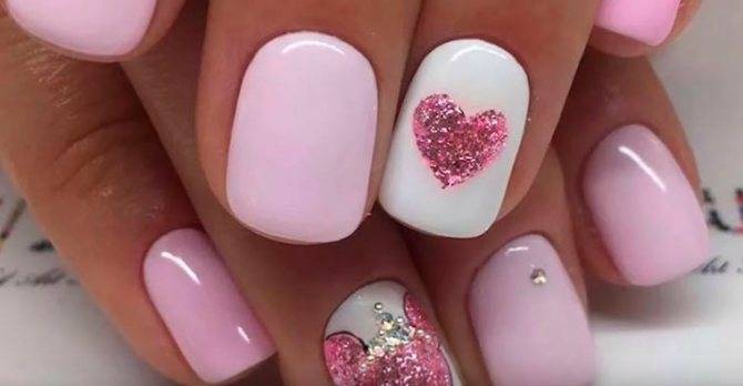 А вот еще идеи нежного школьного маникюра в сочетании с блестками и другими декоративными элементами.