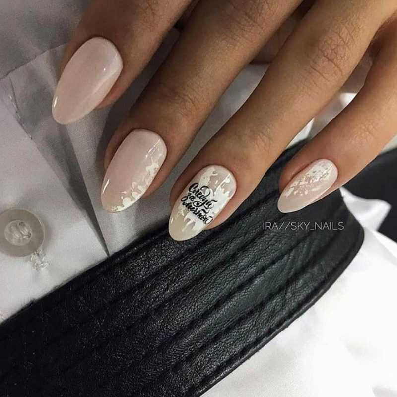 Среди молодых особ в последний год популярны наклейки с фразами и словосочетаниями. Их можно разместить на нежном фоне, а соседние ноготки выделить черным или белым цветом. Как самостоятельно использовать слайдеры мы пошагово расскажем в конце статьи.