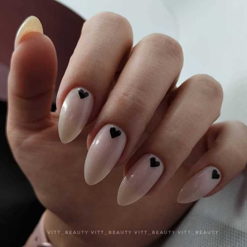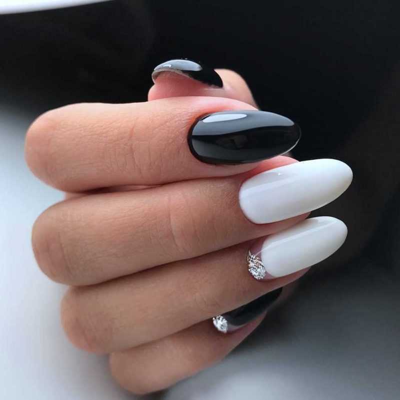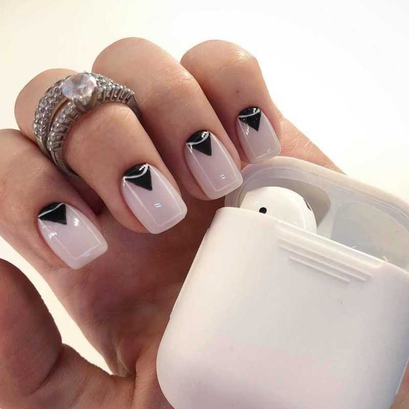 Интересно! В школьном лунном маникюре стильно выглядит контраст черного и белого лака.