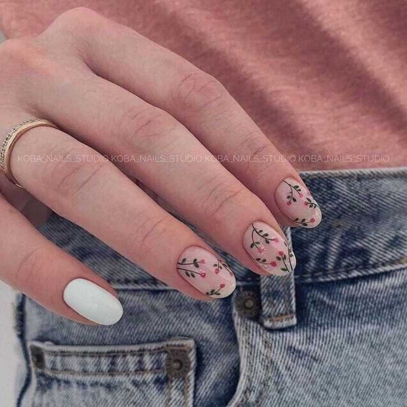Цветочный маникюр на 1 сентября в домашних условиях – прерогатива романтичных натур, обожающих изящные узоры. Разнообразие дизайнов поражает воображение – ажурная роспись в стиле гжель, миниатюрные картины, выполненные в китайской технике, акриловая лепка и гелевый 3D-арт с объемным декором. Но эти нейл-арты требуют особых умений и кропотливого труда.