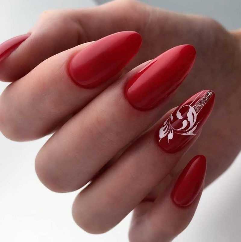 Красный цвет на длинных ногтях приобретает особый шик.