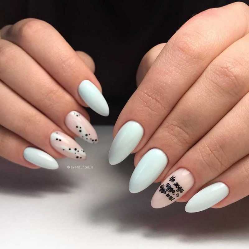 Мятные оттенки, сочетание матового и глянцевого покрытий, уместная инкрустация — залог трендового маникюра. Идея, которой обязательно стоит воспользоваться.