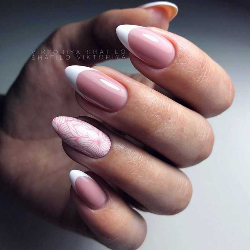 Вот красивый френч с кружевным орнаментом на одном ногте.