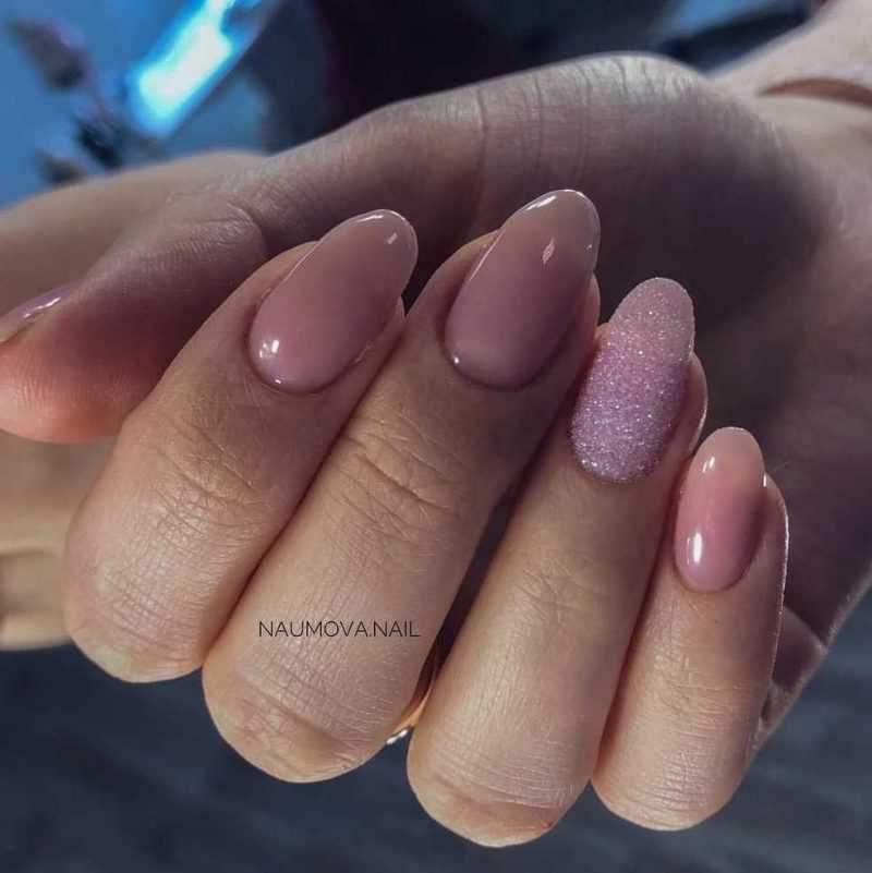 Маникюр в пастельных тонах можно сделать красивее, если использовать фактуру, например, бархатный песок. Получается мило и объемно.