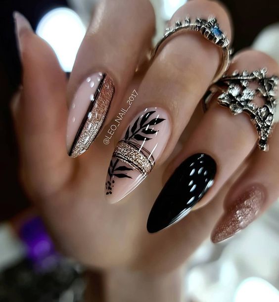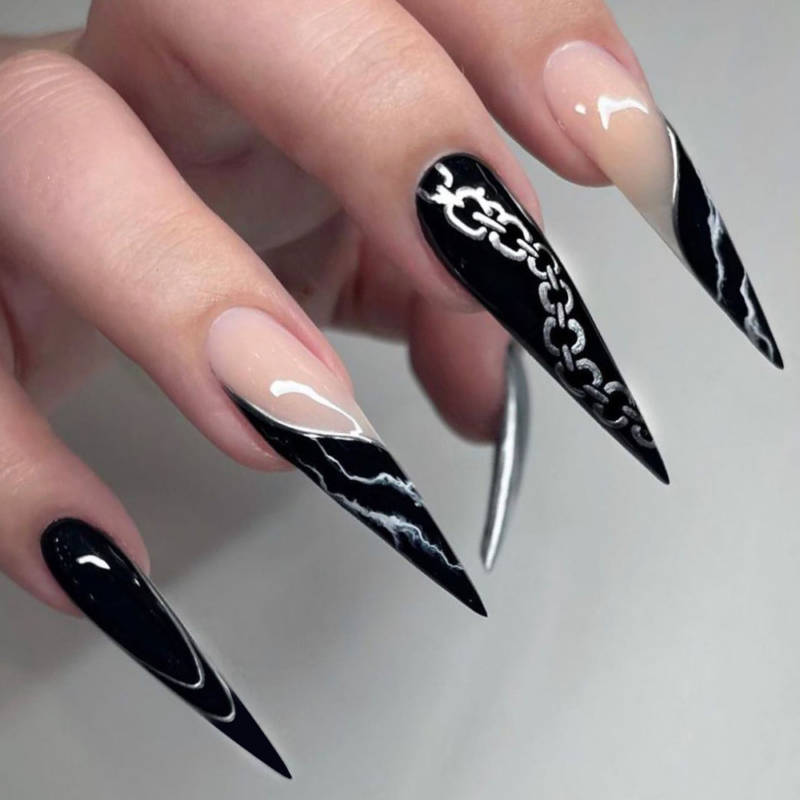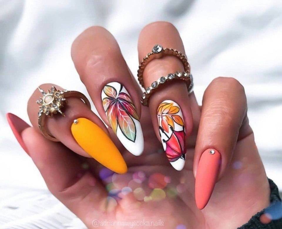 В моде снова черный, белый, золотой и серебристый, а также легкие и хаотичные акценты, которые подходят к любой длине ногтей. Тренды сезона 2021-2022 диктуют делать выбор в пользу ногтевого дизайна с акцентом, например, небольшой, но заметный декор в виде страз, выглядящий так, будто на ногтях есть немного драгоценного камня, блеск золота или серебра, объемные резные цветы, перья, оригинальные аппликации и цепочки.