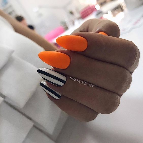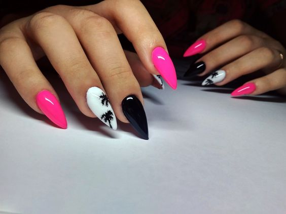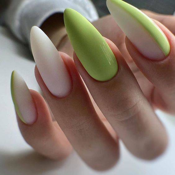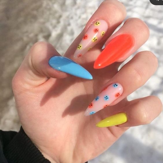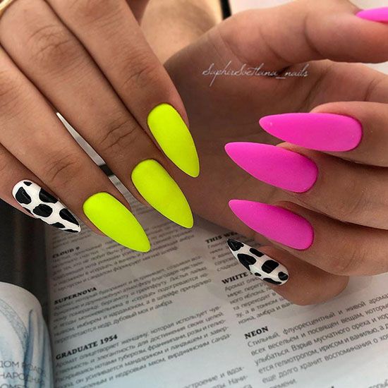 Для длинного дизайна яркие цвета можно использовать в моно-варианте или для создания узоров.