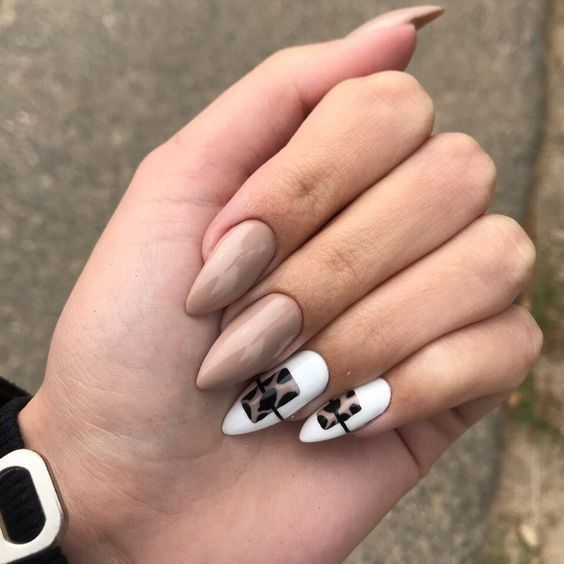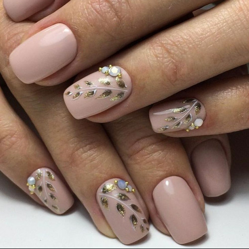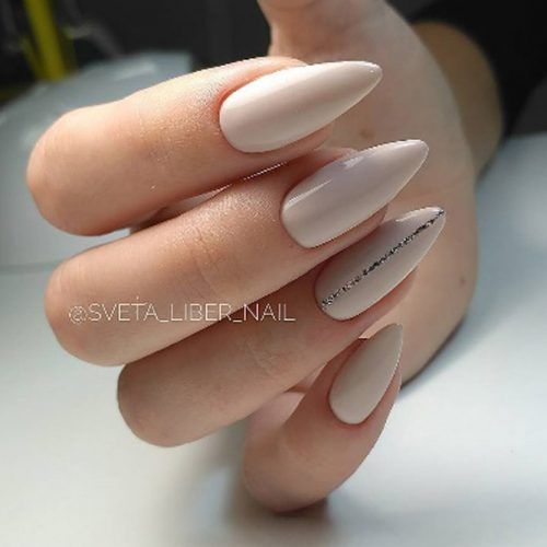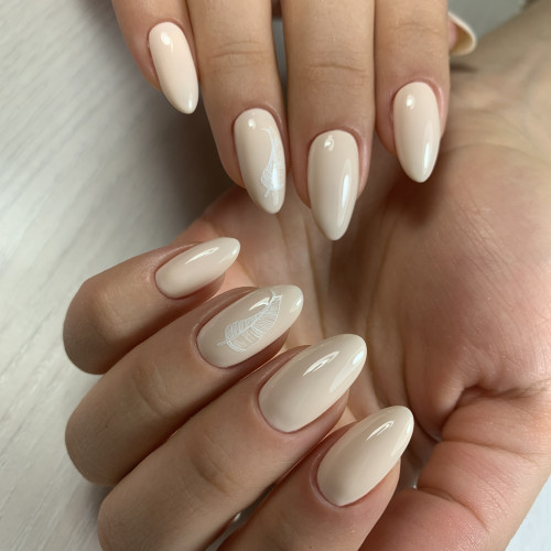 Бежевый маникюр шикарно смотрится с любым дизайном белого, золотого или серебряного оттенков.