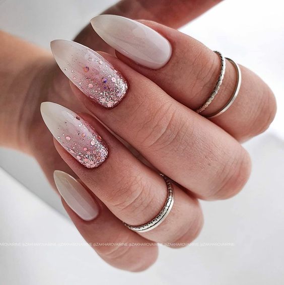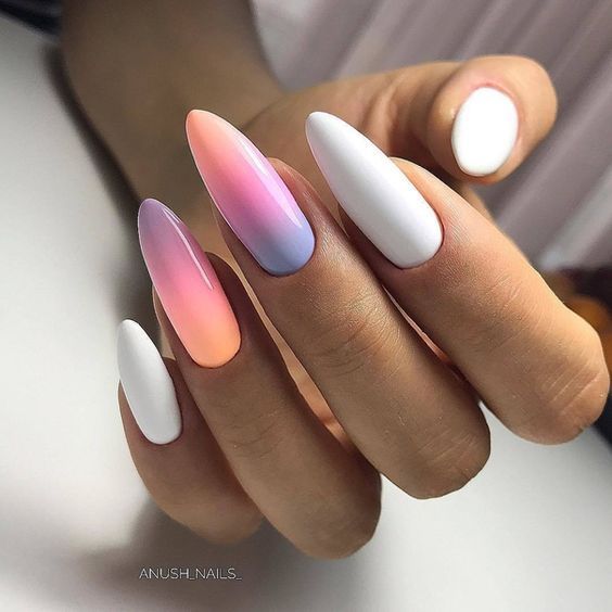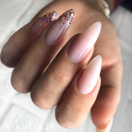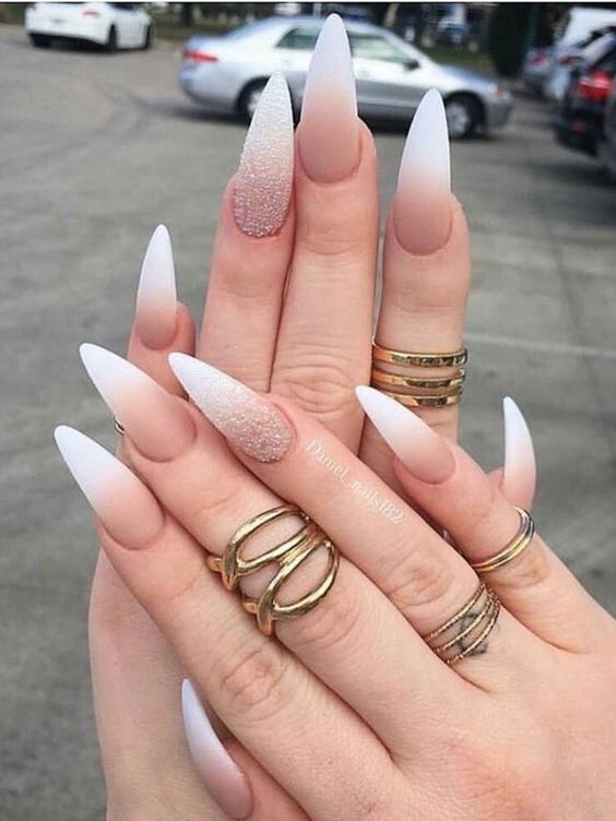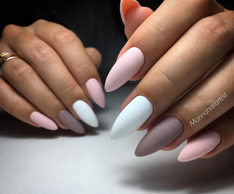 Нюдовый градиент в матовом топе выглядит очень эффектно. Рекомендую всем любительницам острых ноготков.