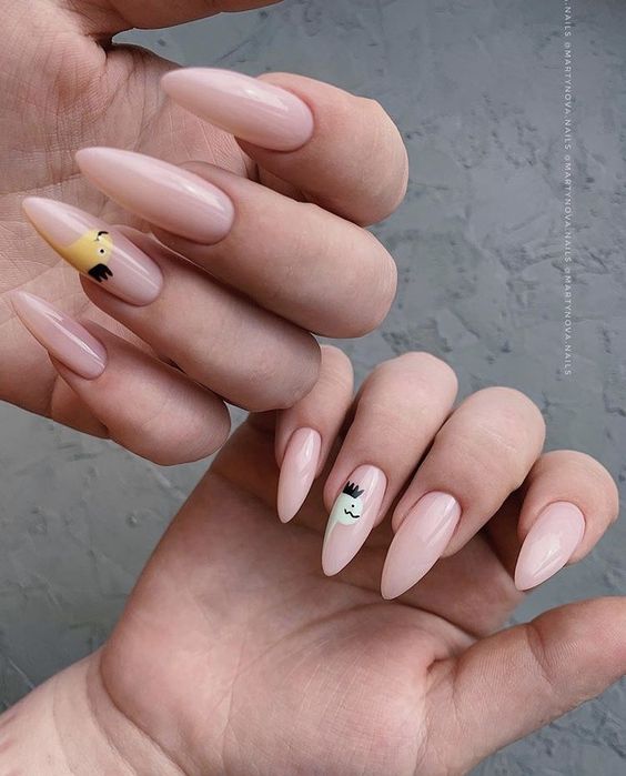 Рекомендую обратить внимание и на такой трендовый маникюр. Небольшие ненавязчивые рисунки на ногтях очень стильно смотрятся