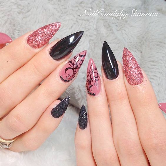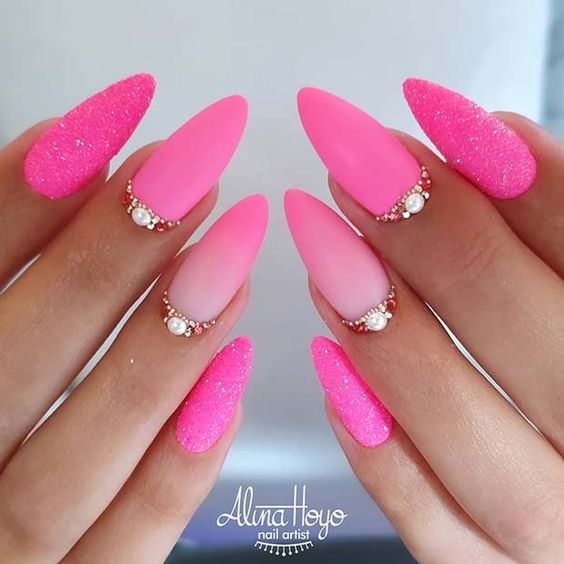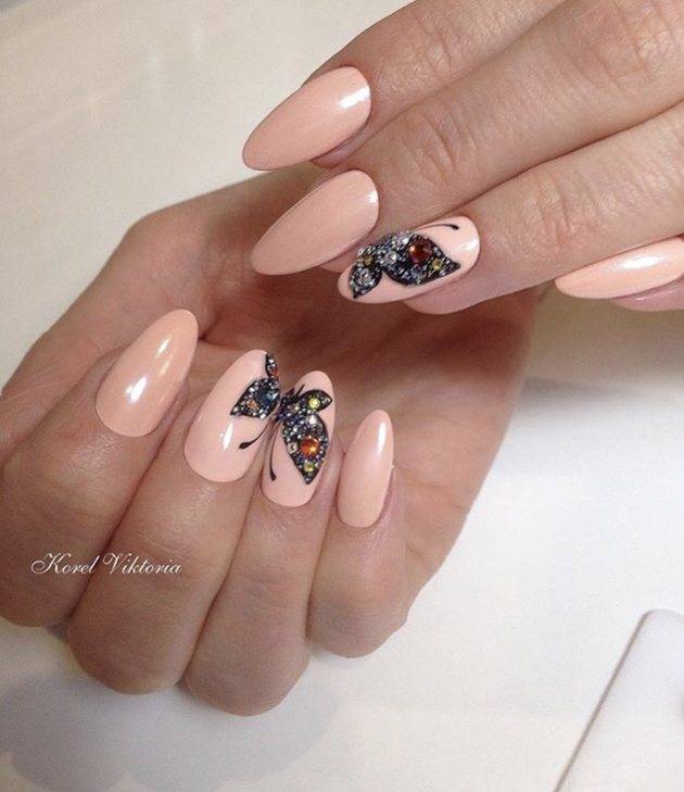 Оформление стразами и блестящим песком добавит шарма и лоска. Стоит взять на вооружение эту модную тенденцию.
