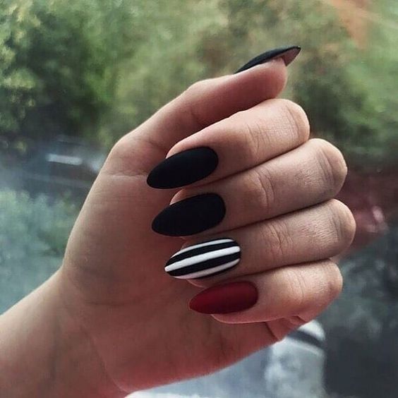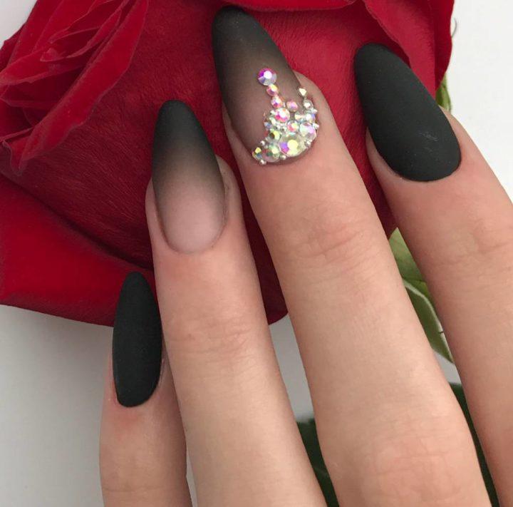 Для создания самого модного дизайна обычно используются разные тёмные оттенки лаков. Их особенность состоит в придании интересного, нетривиального облика ноготкам. В матовом варианте покрытие и вовсе выглядит загадочным и магически притягательным.