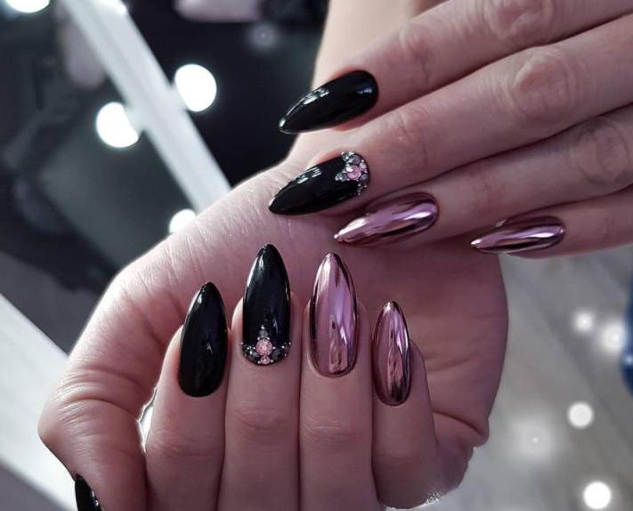 вариантов и прекрасно сочетается с любой формой и длиной ногтей. Декором для трендового маникюра могут служить