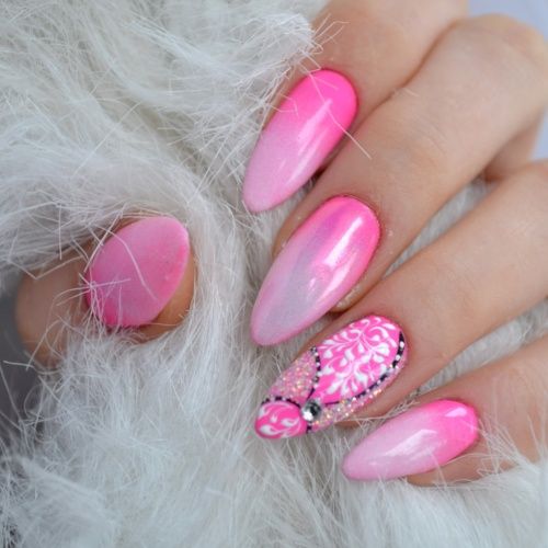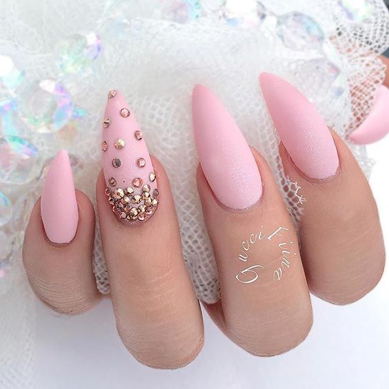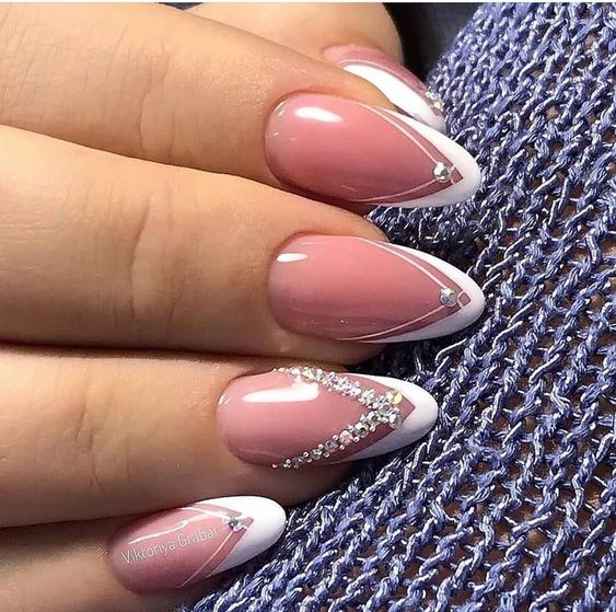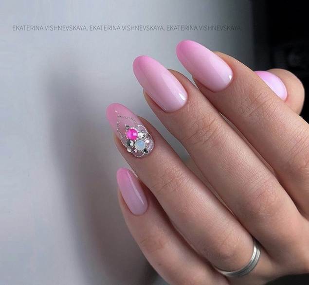 Очень нежно и воздушно смотрится розовый маникюр с френчем или стразами.