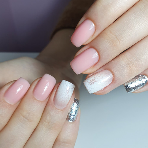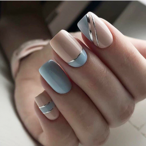 Правильное сочетание нюдовых оттенков и серебра. Популярнейшая идея маникюра.