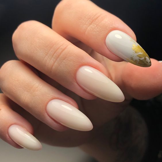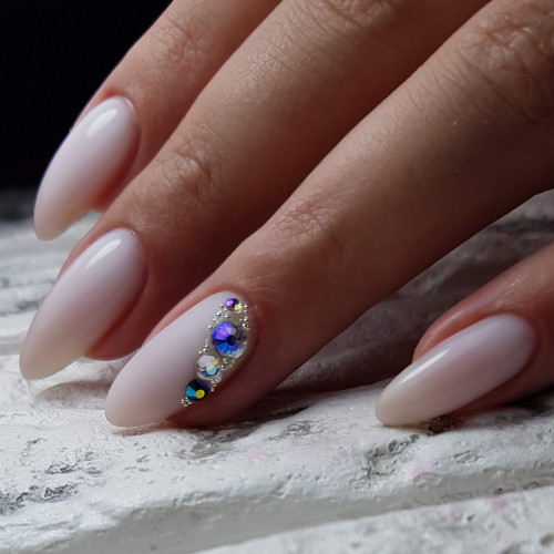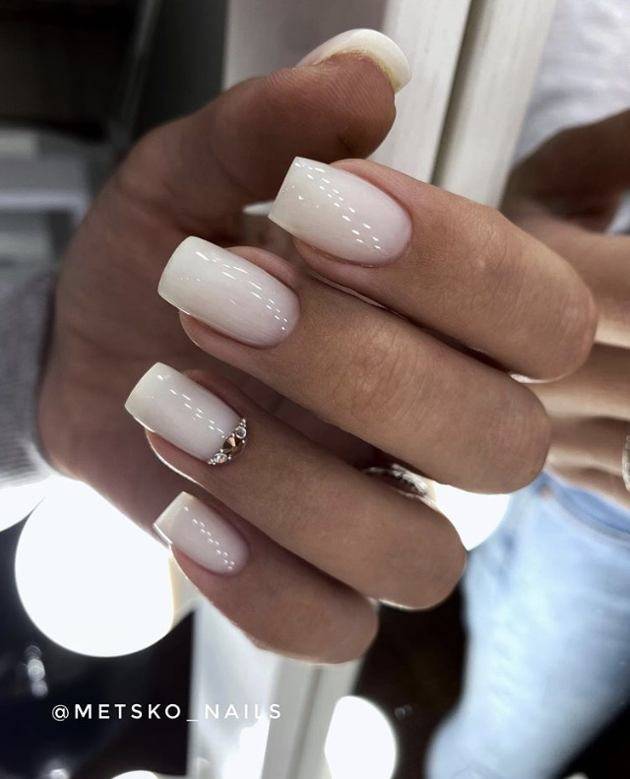 Маникюр молочного цвета шикарно смотрится с любыми украшениями.