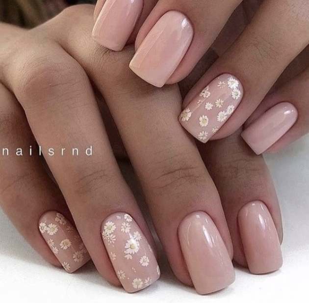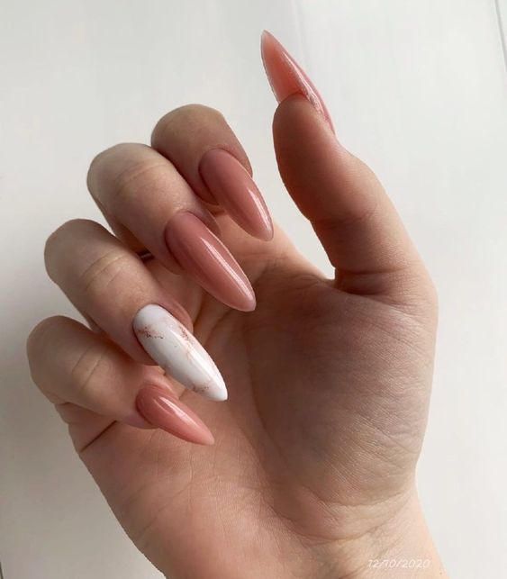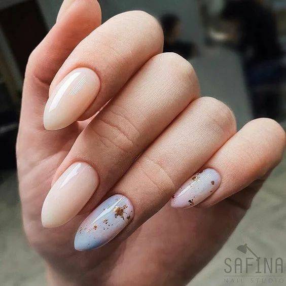 Модный дизайн маникюра в 2021-2022 — нюдовое покрытие и оригинальное оформление.