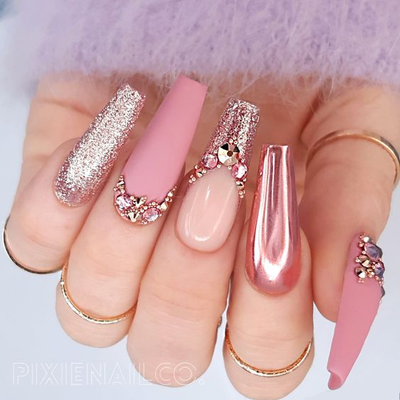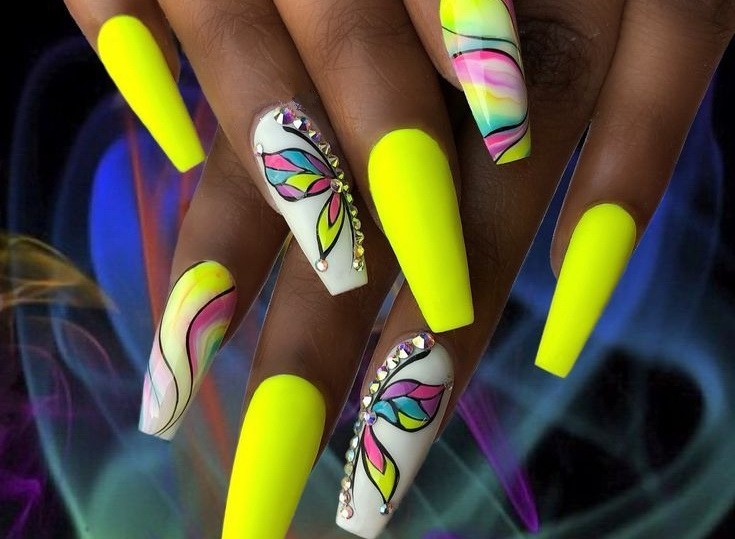 Идеи дизайна длинных ногтей: лучшие рисунки 2021-2022, декор стразами и блестками
