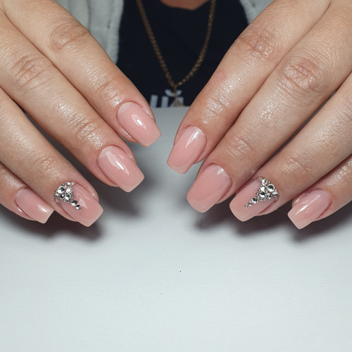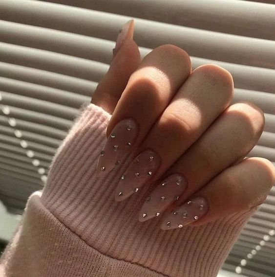 Полупрозрачное покрытие и стразы довольно заезженная тема, но по-прежнему пользуется спросом.
