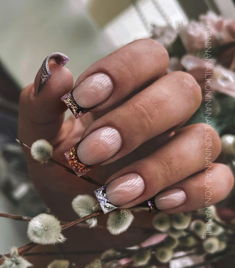 С ее помощью легко украсить любой французский маникюр, чтобы он стал ярче, начал переливаться и всем поднимал настроение.