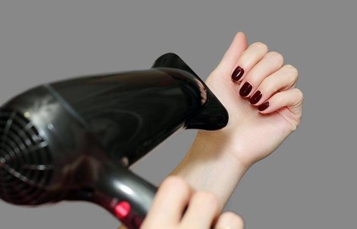 Избегайте сушки ногтей феном, так как это может привести к их обезвоживанию и ломкости. Дайте ногтям высохнуть естественным путем.