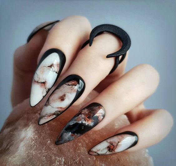 И конечно же, маникюр будет интереснее сделать в соответствии с общей тематикой такой вечеринки. Посмотрите, как интересно и необычно может быть оформлен такой маникюр.
