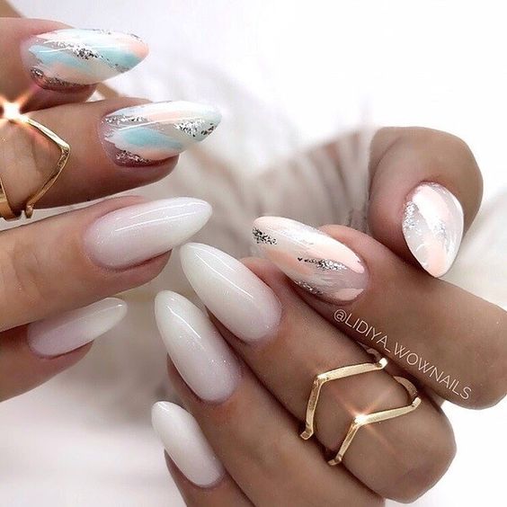 Светлые тона на ноготках придают рукам легкость и нежность. Классический вариант – френч с пастельными тонами. Другие хорошие приемы: