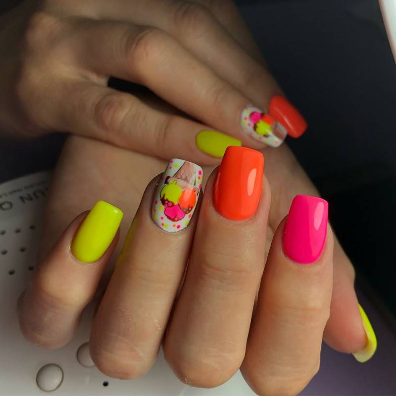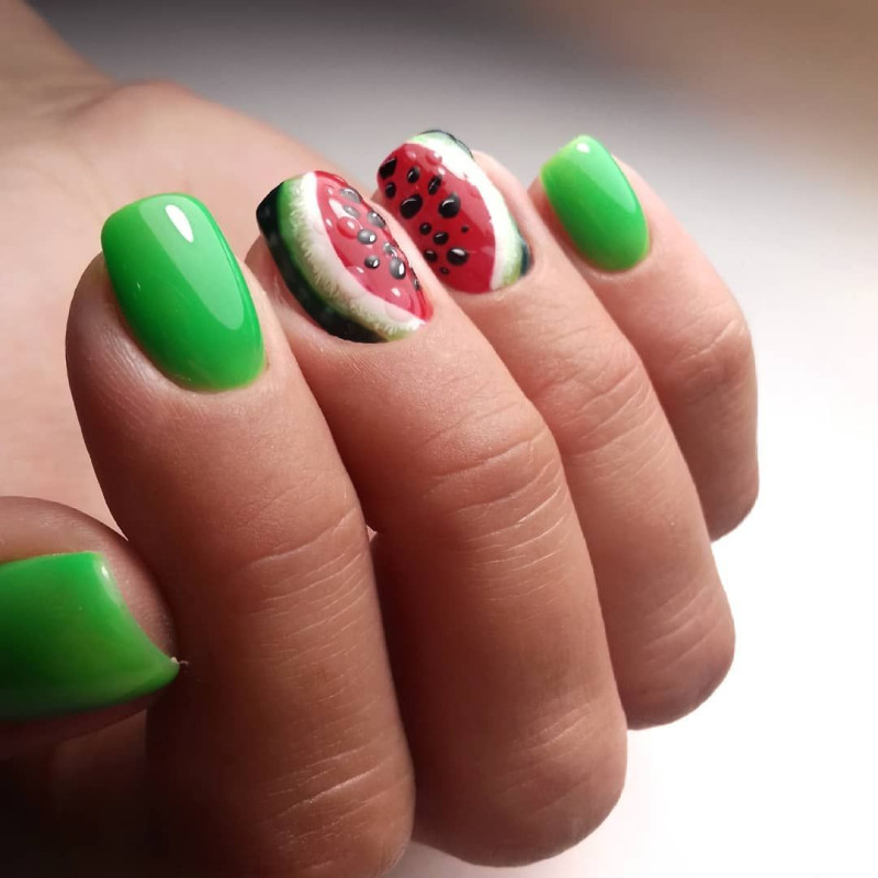 Маникюр на квадратные ногти: фруктовое безумие на лето
