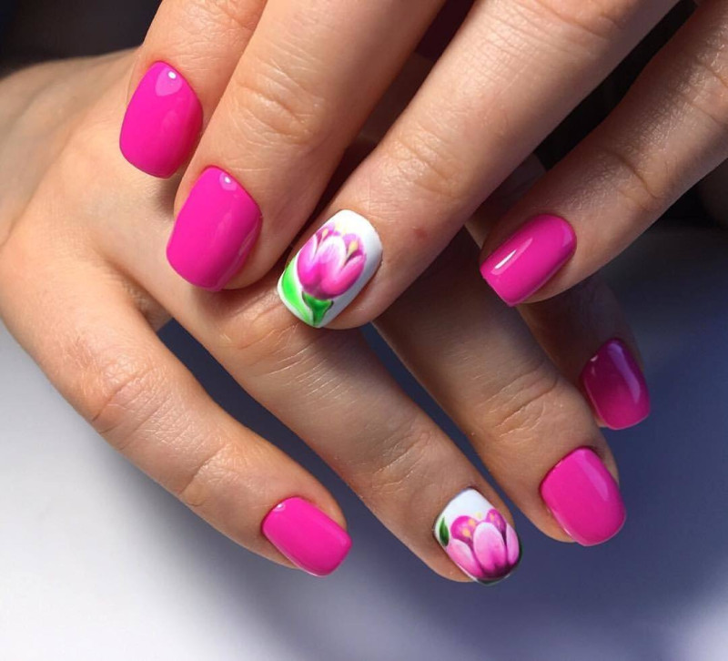 Есть такие рисунки в маникюре, которые точно будут актуальны всегда. В данном случае речь идет о цветочном принте, который считается трендом №1 летнего сезона. Интересно, что в зависимости от выбранного варианта маникюр будет производить совершенно разное впечатление. Тонкие, изящные веточки с бутонами будут характеризовать вас как человека скромного, но в то же время романтичного. Крупные, яркие цветы при тщательной прорисовке всех деталей делают картину особенно яркой. Тропические принты выдают планы на лето, привлекая тем самым еще больше внимания. Не ограничивайте себя в выборе, а экспериментируйте как можно раньше. Только так можно прийти к собственному чувству вкуса и стиля.