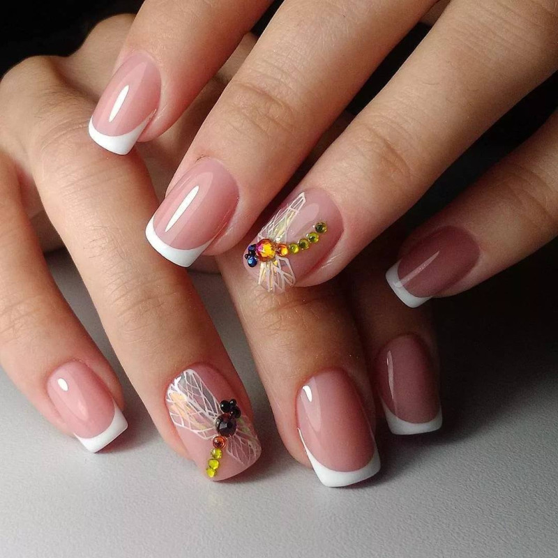 Маникюр со стразами в каждом сезоне занимает свою топовую позицию и 2020 год не исключение. Стразы могут быть в разной цветовой палитре и иметь разную форму. Стразы являются идеальным декором, который может дополнять любой рисунок. Красиво выложенные стразы у основания ногтя или в виде тематического узора будут выглядеть шикарно на квадратной форме ногтей.
