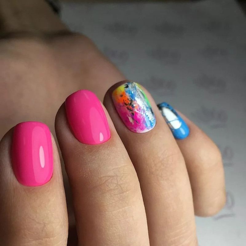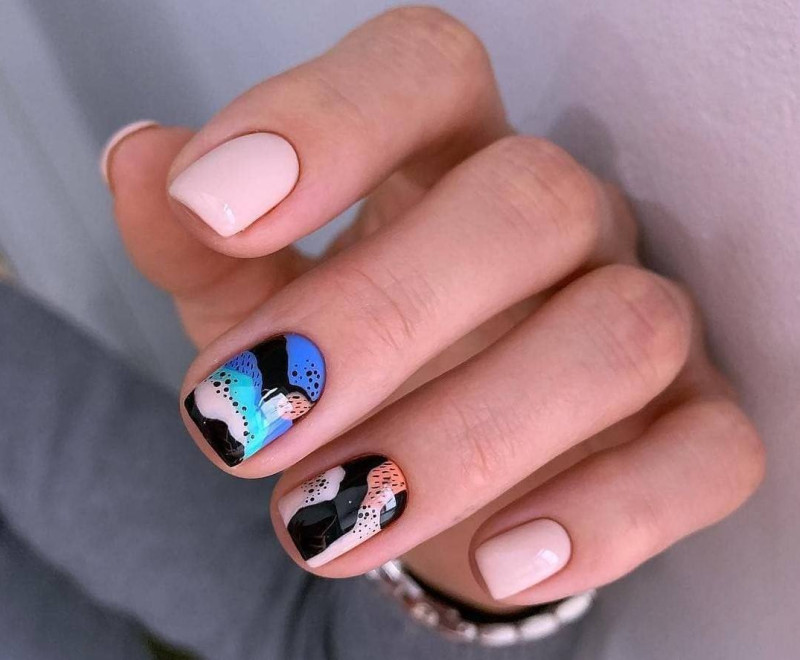 Абстракцией можно назвать любой нейл-дизайн, который характеризуется отсутствием строгой упорядоченности и чётких принтов. Говоря иначе, для абстракции свойственна хаотичность, небрежность и выразительность. Акцент здесь делается прежде всего на эстетической стороне, которая нередко выходит за рамки логики.