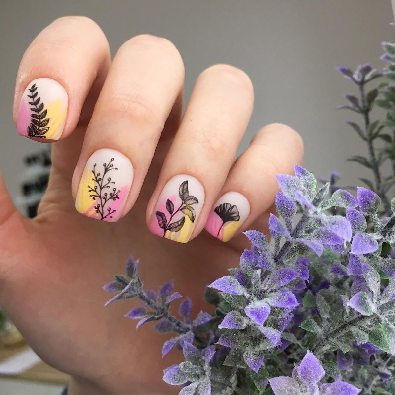 Отлично будет смотреться абстракция, френч, градиент, дизайн “негативное пространство”, а также цветочный или растительный дизайн.