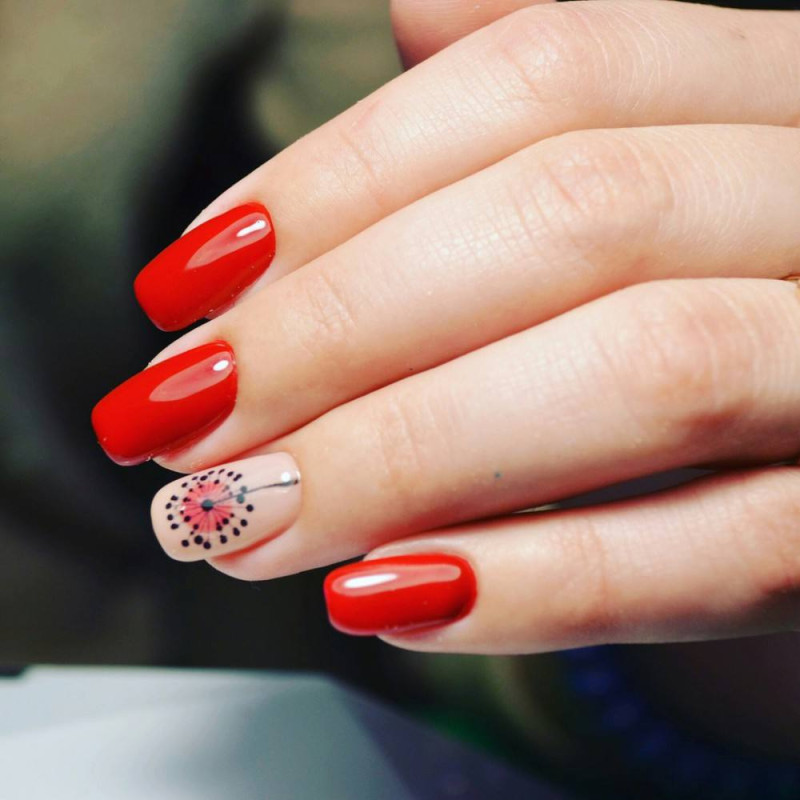 Остальные ногти можно покрыть классическими цветами: бордовым, розовым или бежевым.