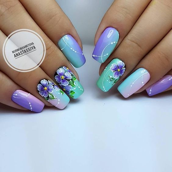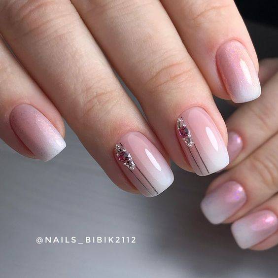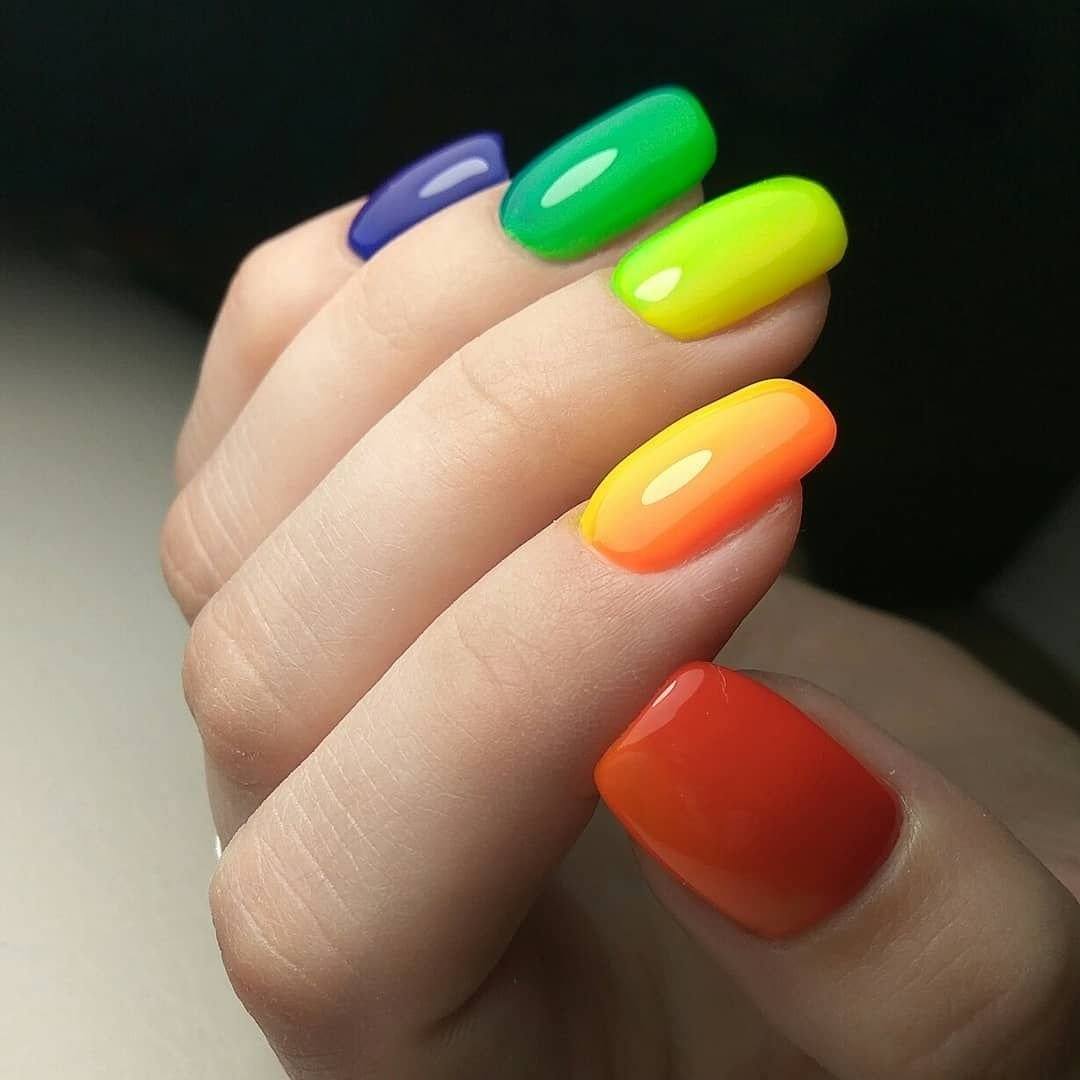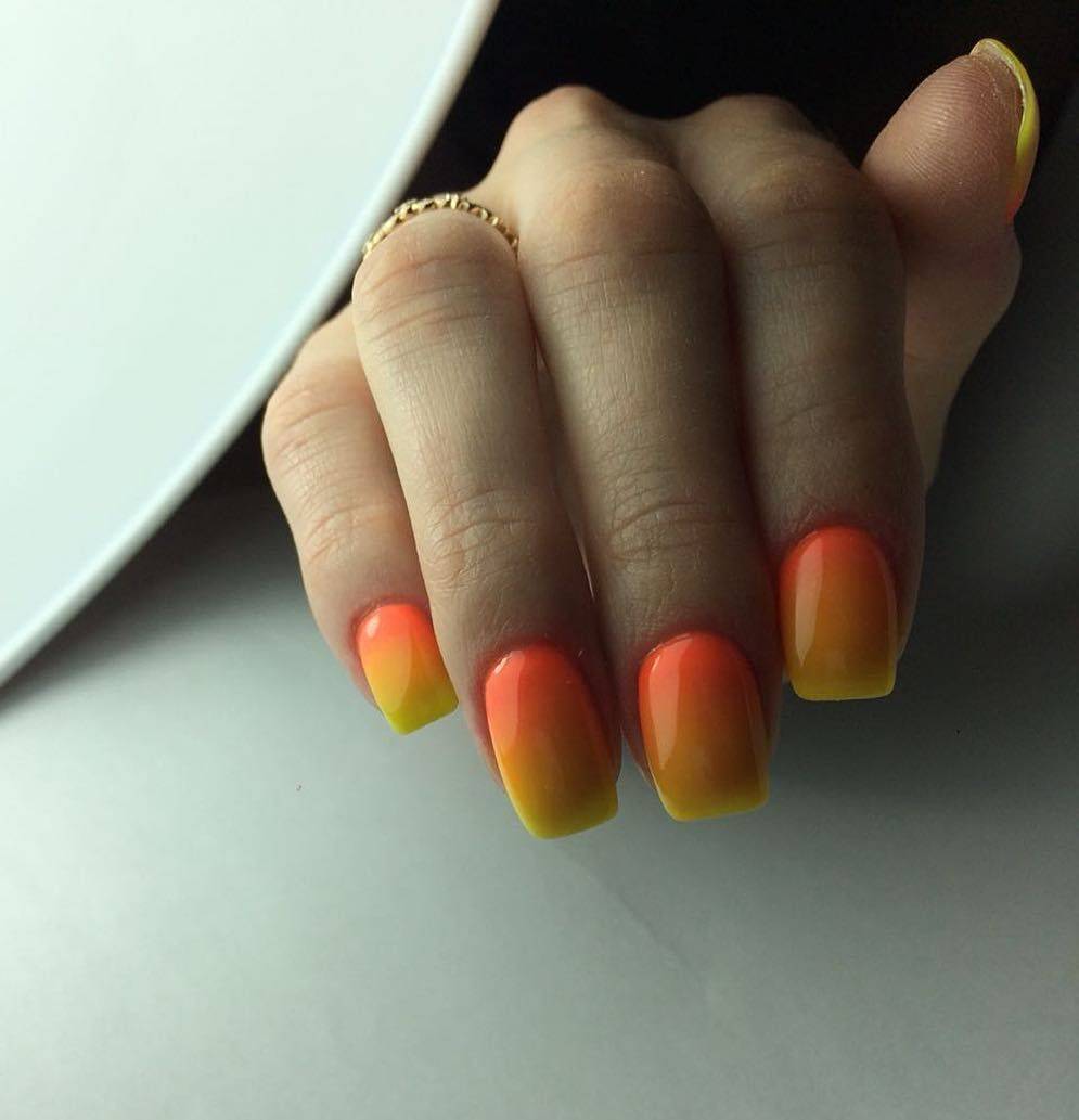 Ещё одна особенность градиента заключается в том, что границы между цветами здесь как бы размываются — в результате возникает ощущение, что оттенки буквально растворяются друг в друге. Наиболее распространённый вариант градиента в нейл-дизайне предполагает сочетание двух или трёх цветов.