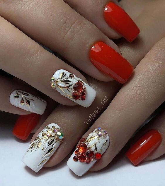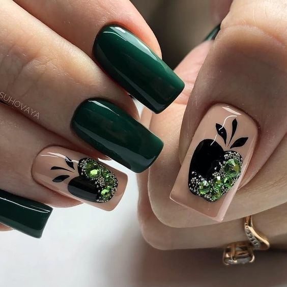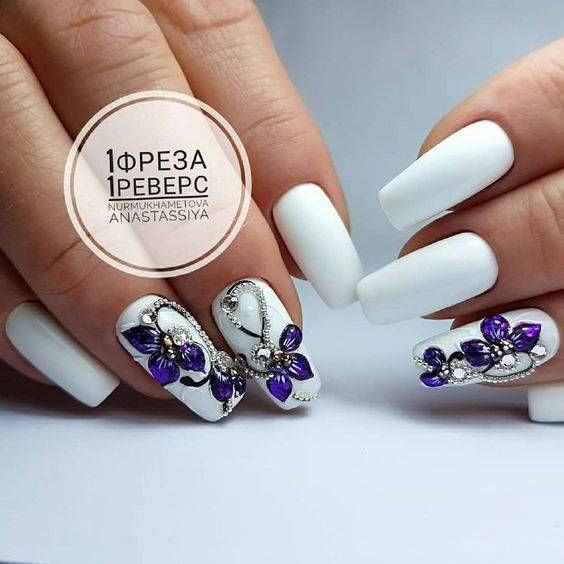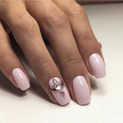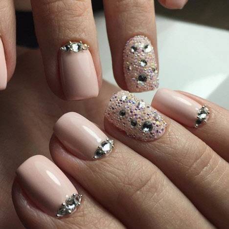 Маникюр со стразами в каждом сезоне занимает свою топовую позицию и 2020 год не исключение. Стразы могут быть в разной цветовой палитре и иметь разную форму. Стразы являются идеальным декором, который может дополнять любой рисунок. Красиво выложенные стразы у основания ногтя или в виде тематического узора будут выглядеть шикарно на квадратной форме ногтей.