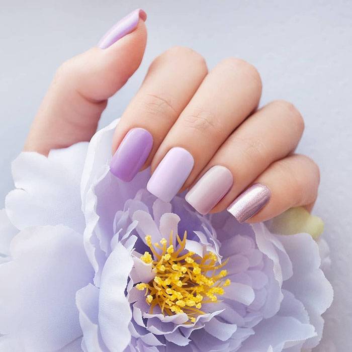 Последний оттенок будет отлично смотреться на маникюре на длинный квадрат.
