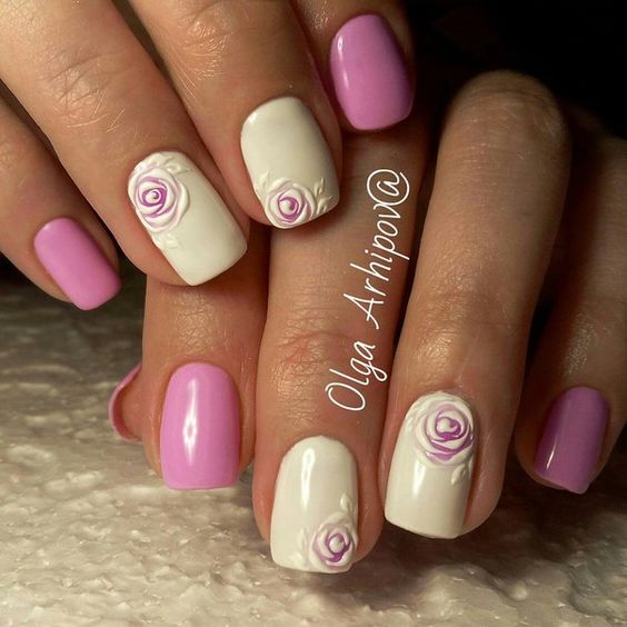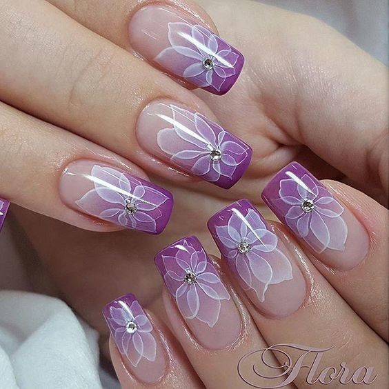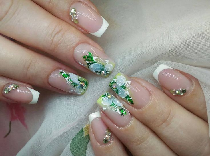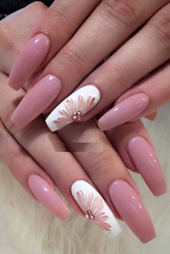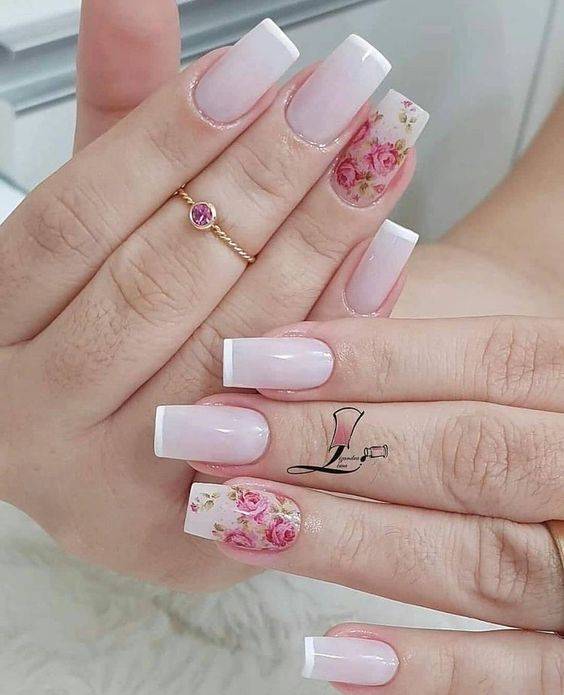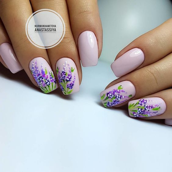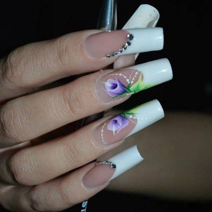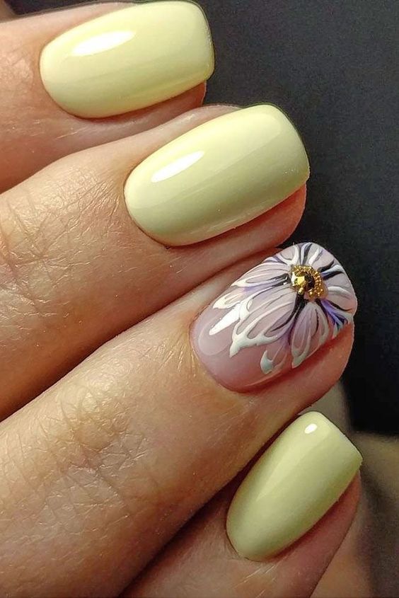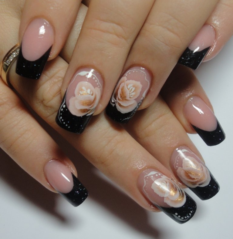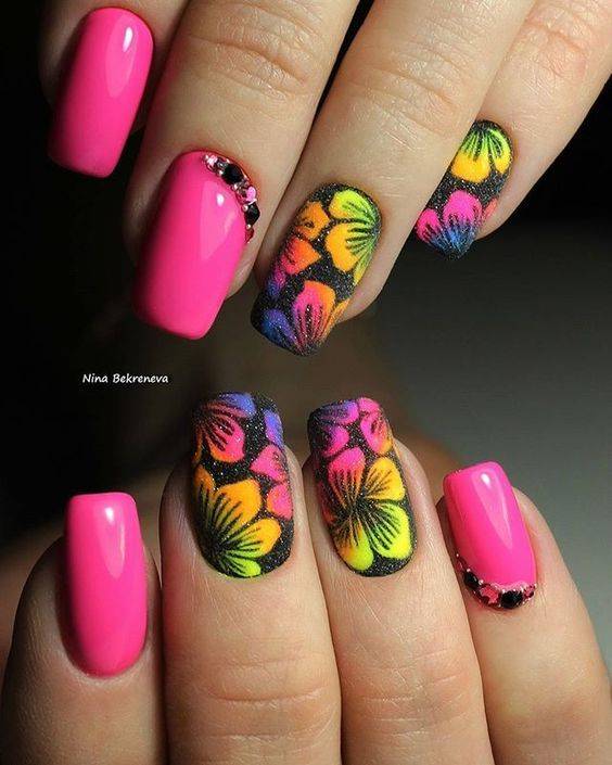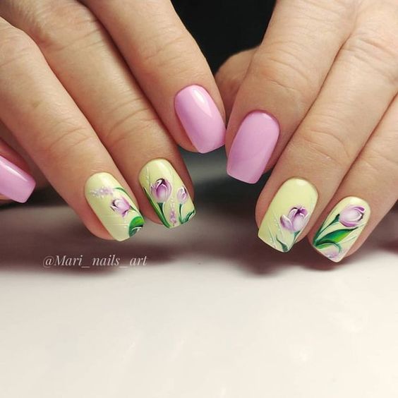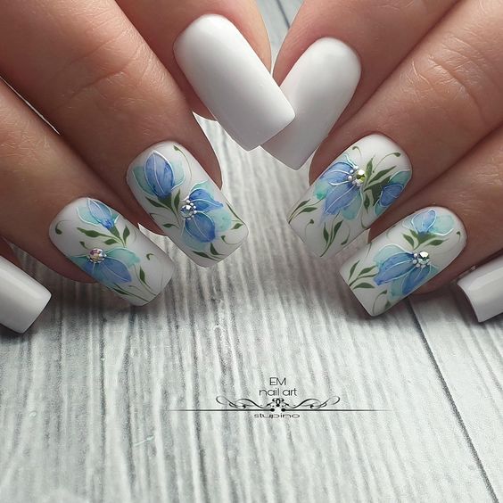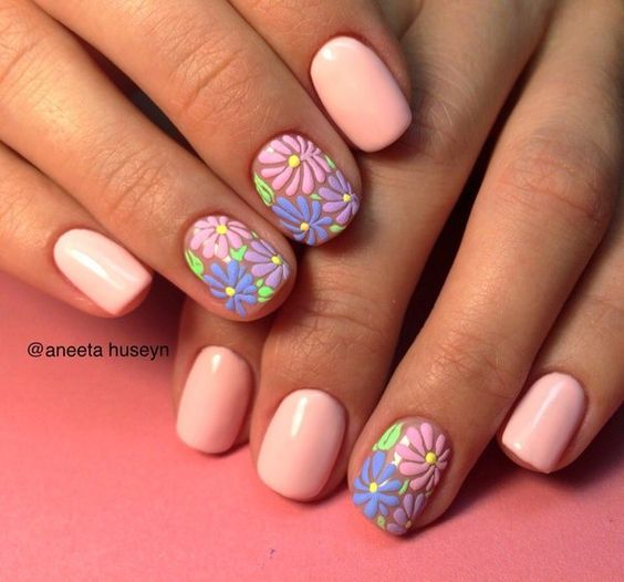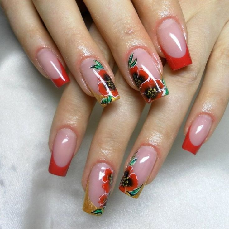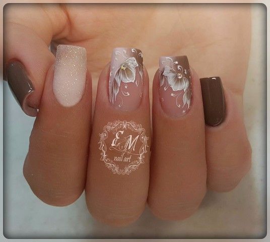 Цветочные мотивы создают изысканный, романтичный образ. Но поскольку этот дизайн довольно яркий, то его лучше использовать для одного-двух пальцев.
