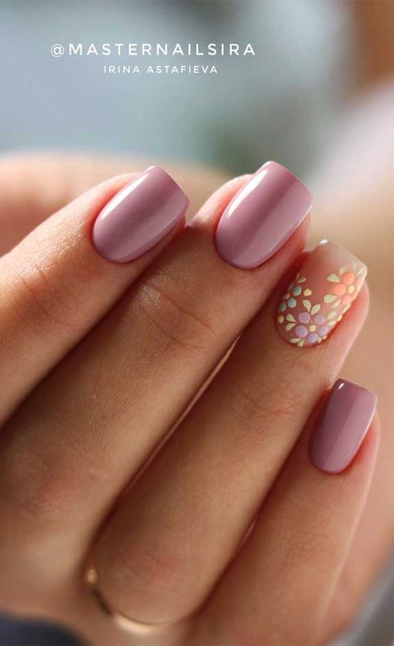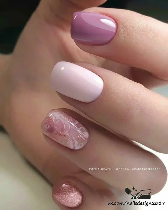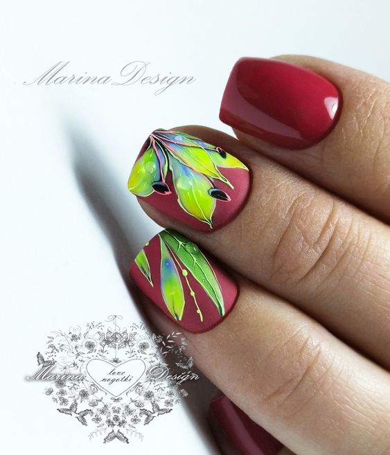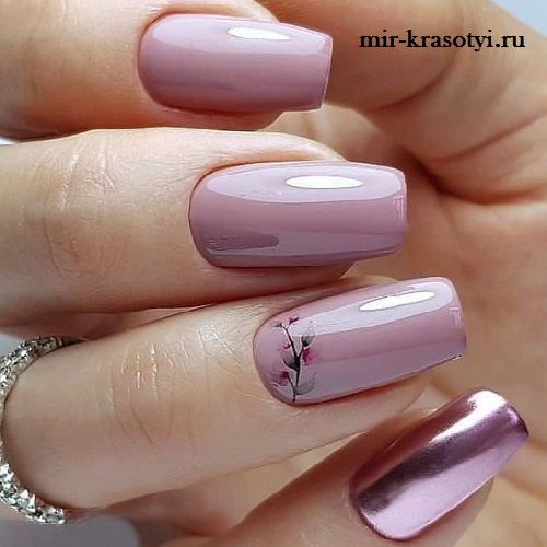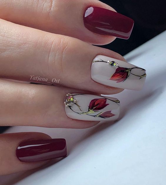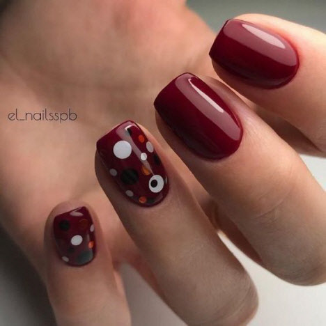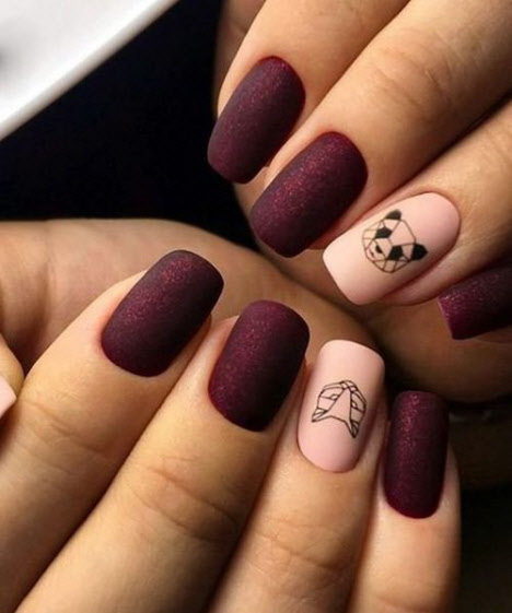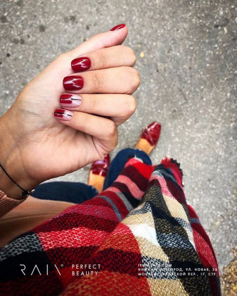 Остальные ногти можно покрыть классическими цветами: бордовым, розовым или бежевым.