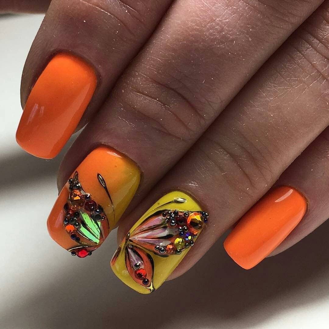 Конечно, градиентный дизайн вряд ли можно назвать дизайнерским новшеством. Но все же в летний сезон он становится как никогда актуальным. Яркие оттенки, плавно переходящие друг в друга, смотрятся невероятно красиво и эффектно. Но даже такой маникюр часто дополняется фруктовым или цветочным принтом. Это позволяет сделать его уникальным, не похожим на другие. А наличие декора полностью преображает градиентный дизайн.
