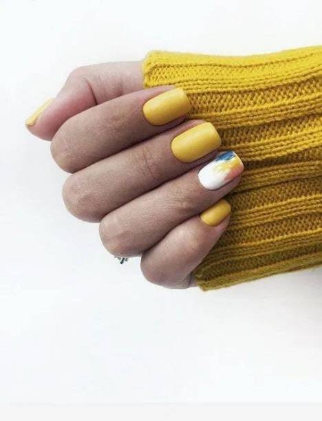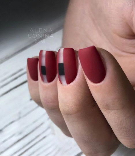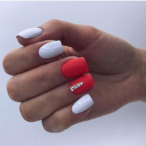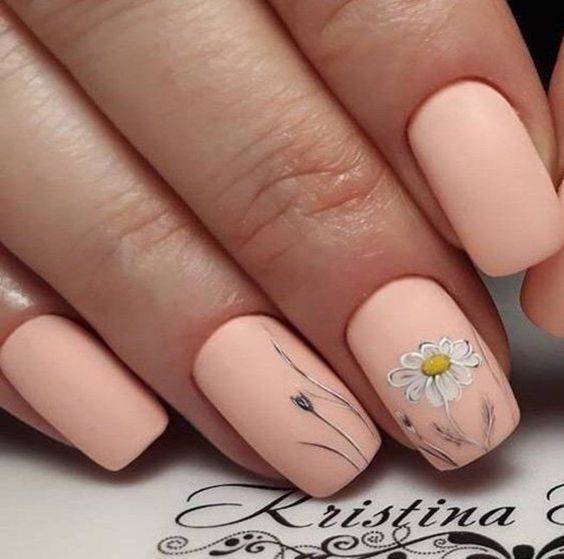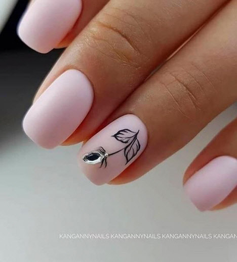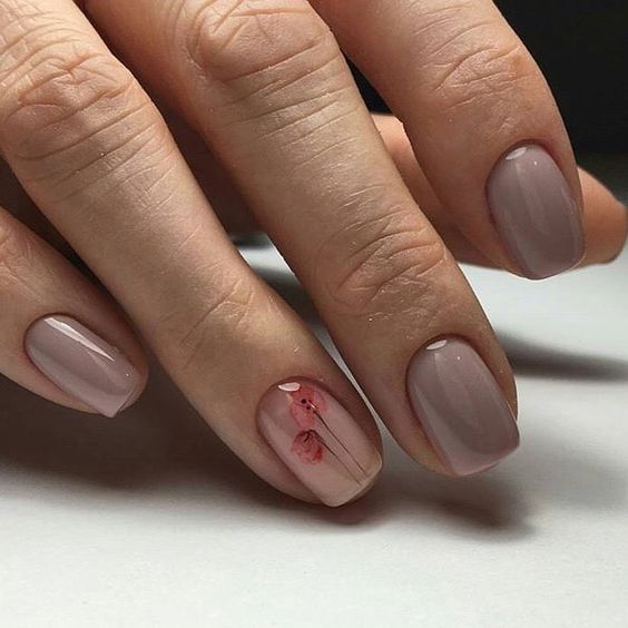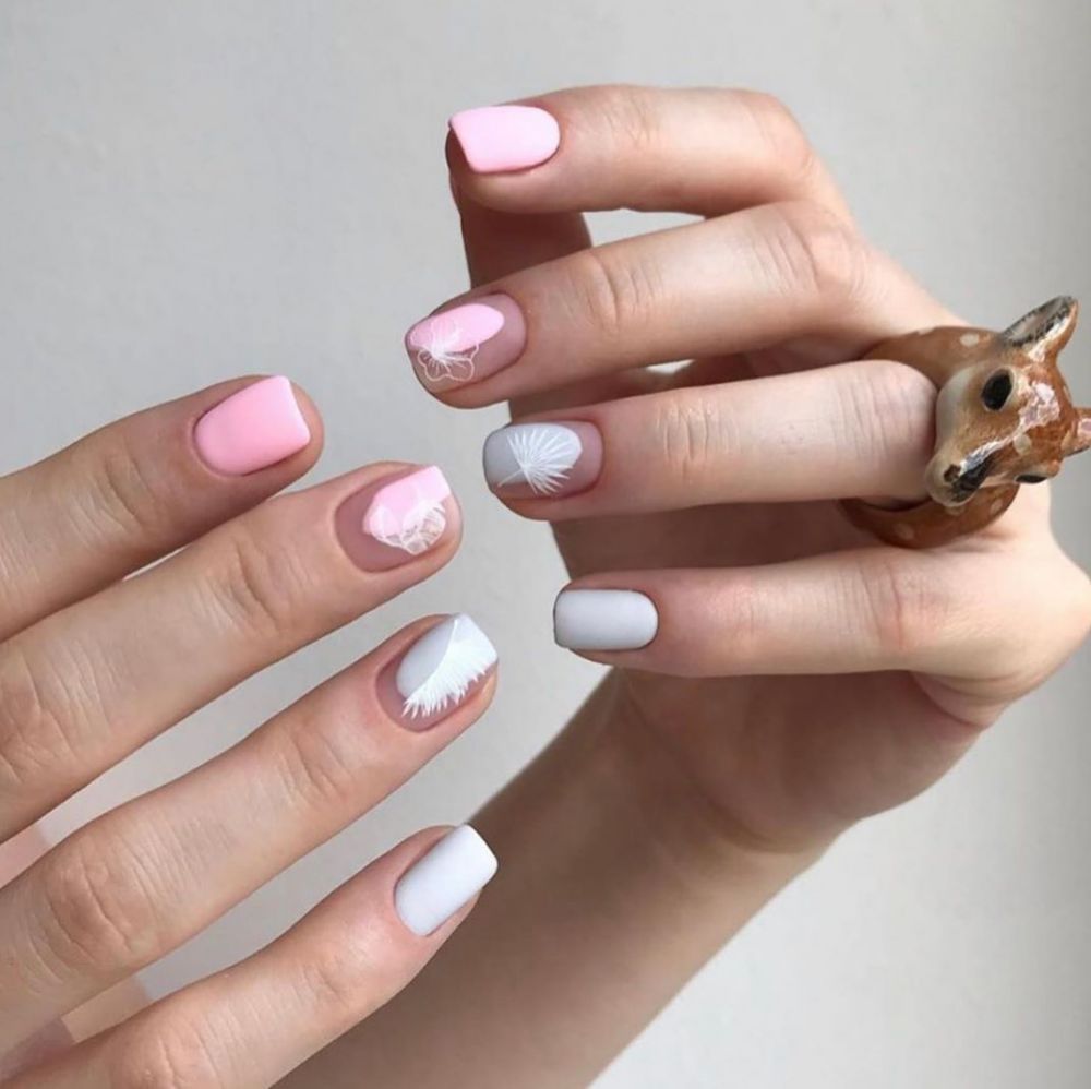 Хорошей идеей станет матовый маникюр. Его можно сделать однотонным, а можно добавить незамысловатые рисунки. В приоритете следующие цвета: